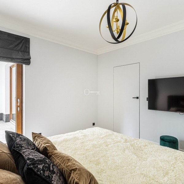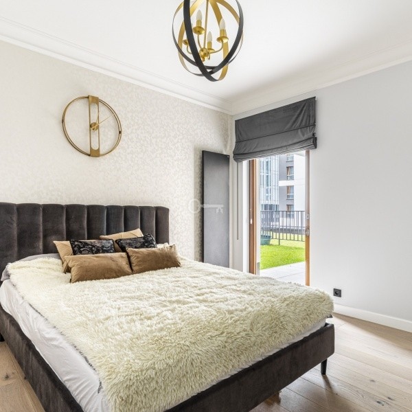 Nowoczesnego designu nadają drewniane, panoramiczne okna. Mieszkanie jest w pełni umeblowane, gotowe do zamieszkania, wyposażone w sprzęt AGD, RTV, wykończone materiałami wysokiej jakości. W wyposażeniu są też przestronne szafy wnękowe.