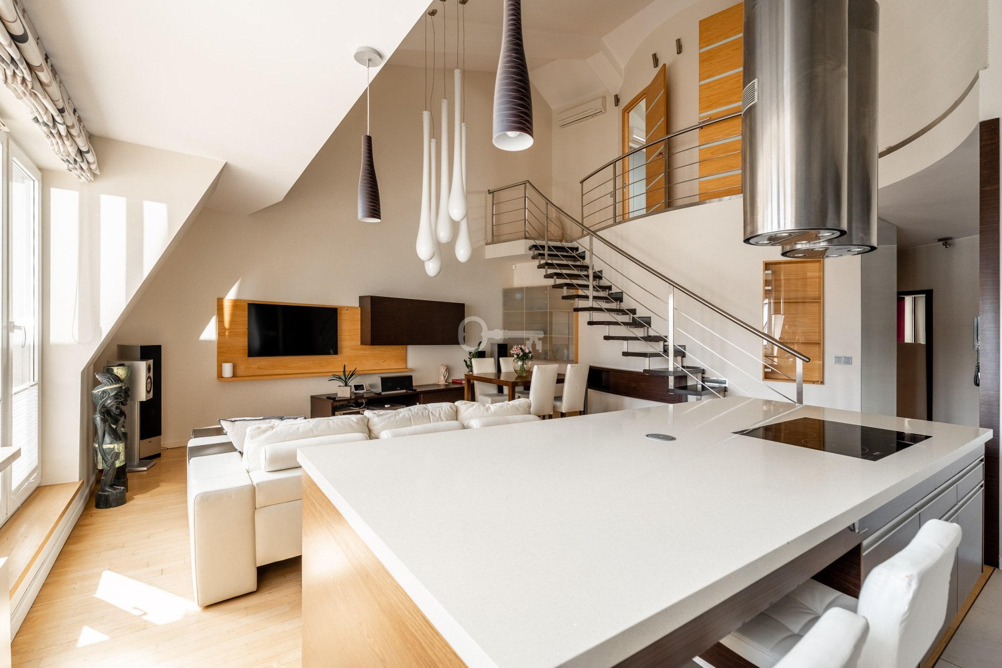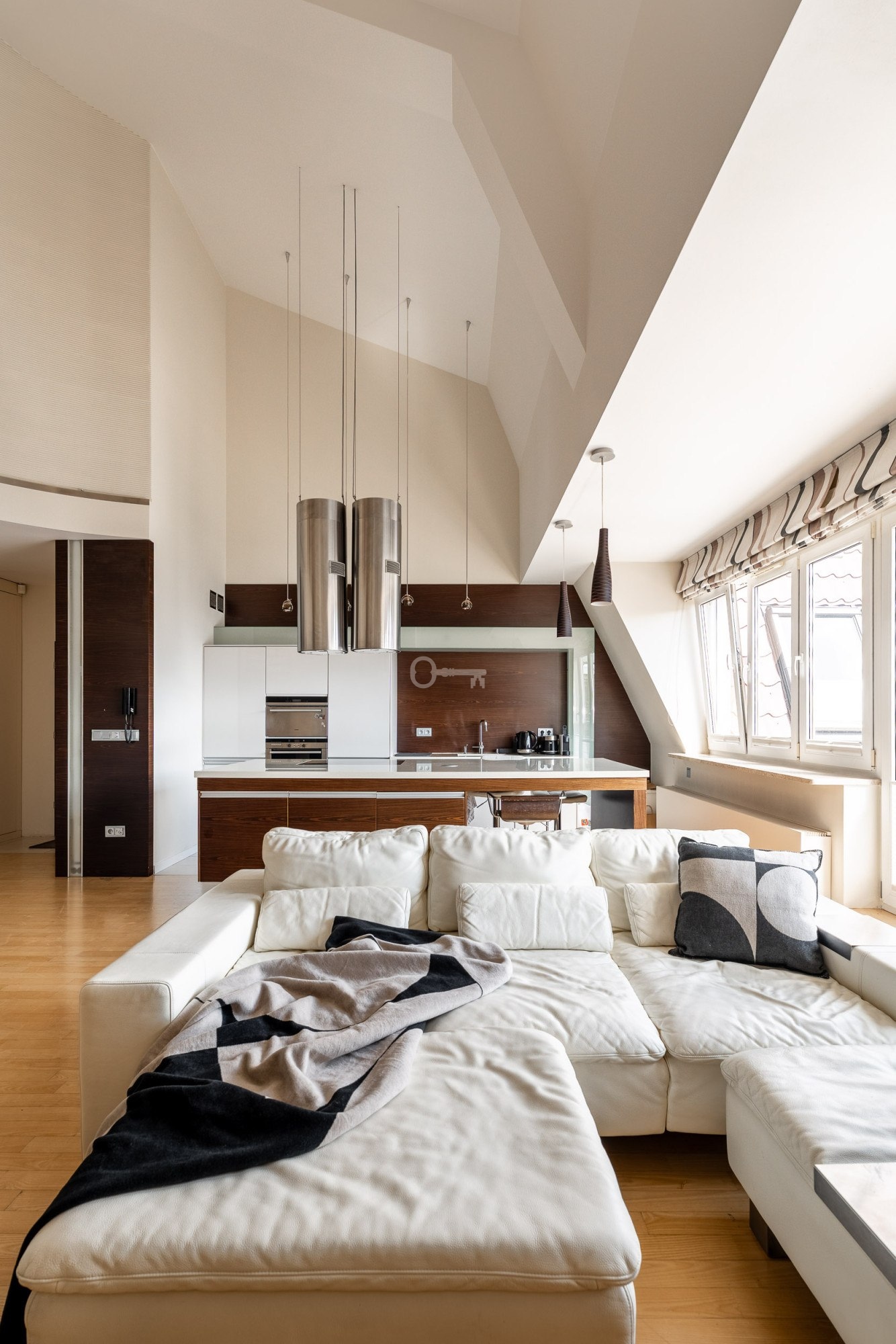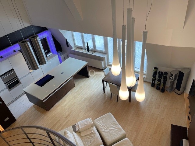 * przestronny salon z wyjątkową wysokością sięgającą miejscami ponad 5 metrów,