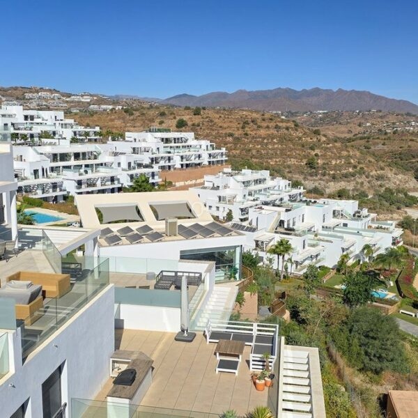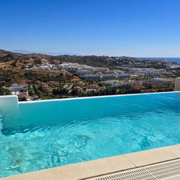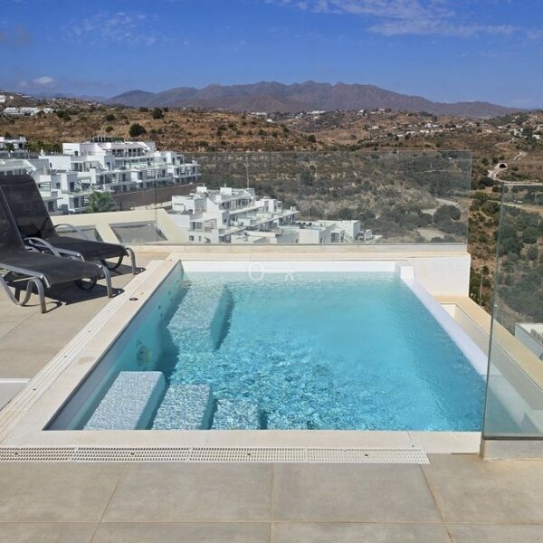 Ten penthouse w La Cala de Mijas oferuje 4 sypialnie, 3 łazienki, 124 m² powierzchni wewnętrznej i prawie 200 m² tarasów z prywatnym basenem, położony w kompleksie Casa Banderas ukończonym w 2019 roku.
