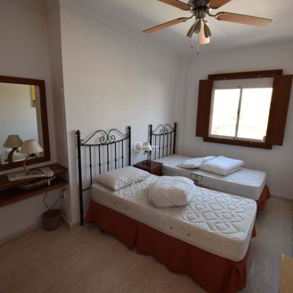 Well presented three bedroom, two bathroom, second floor apartment, perfect for family holidays or permanent living. Located in the centre of La Cala and only 230 metres to the beach, this is an ideal apartment to enjoy everything La Cala has to offer. In a well established community with a selection of cafes, restaurants, shops and bars all within a few minutes walk from your front door. The apartment comprises of an entrance hall, generous lounge/dining room, semi-open plan kitchen, three bedrooms, an en-suite bathroom and shower room. From the lounge you have direct access to the sunny, south facing terrace which has nice views overlooking the communal swimming pool and the garden. The master bedroom also looks out over the swimming pool and the two guest bedrooms are to the rear of the apartment. The air conditioning system has recently been renewed, all bedrooms have built in wardrobes and their are ceiling fans in all the main rooms.