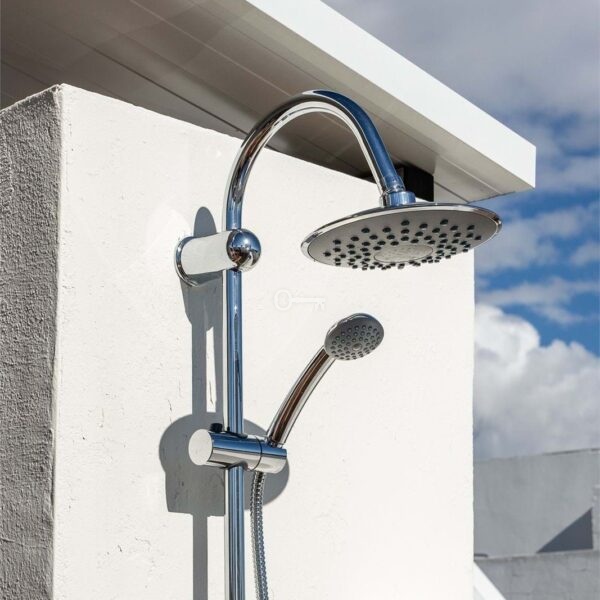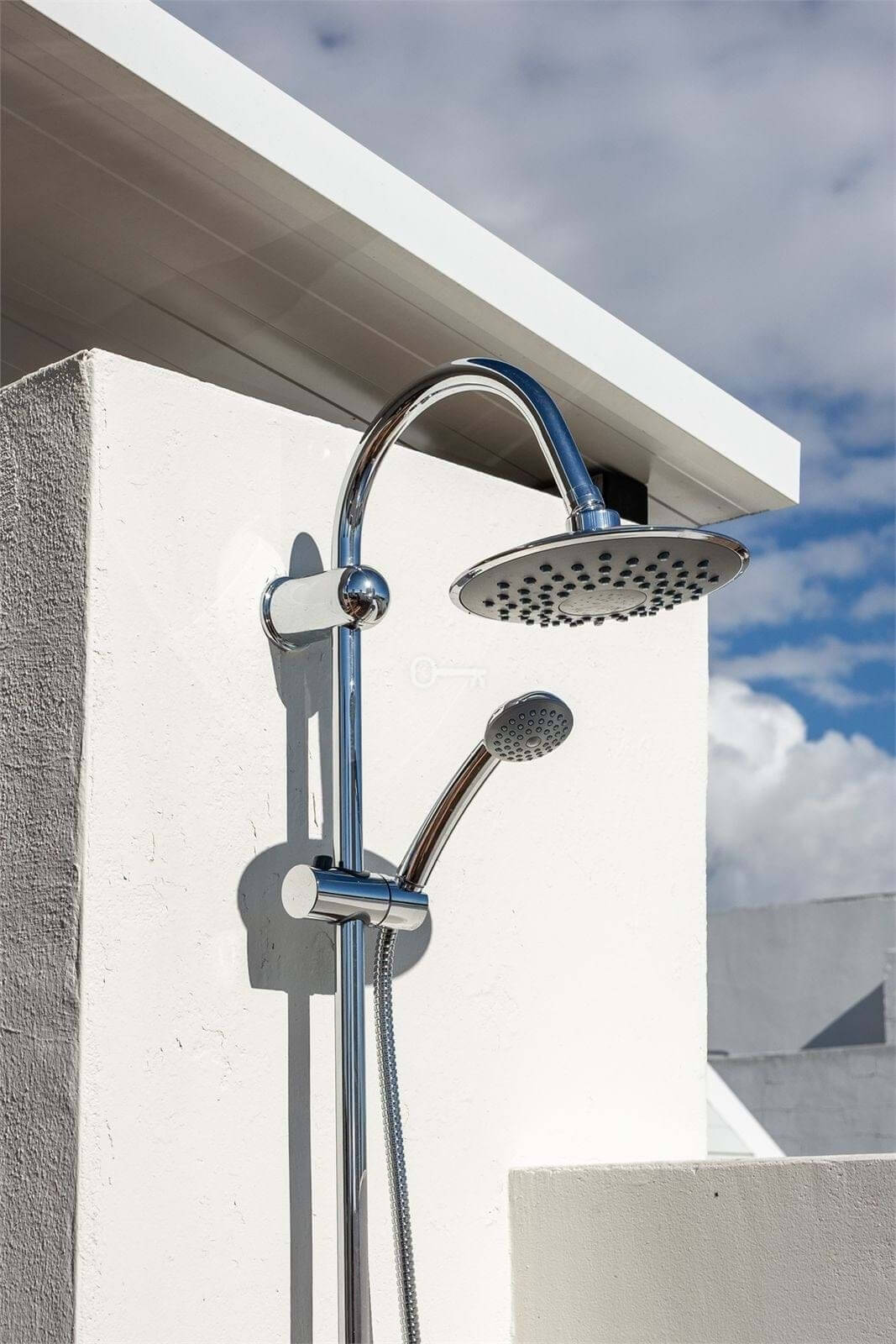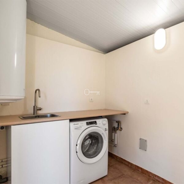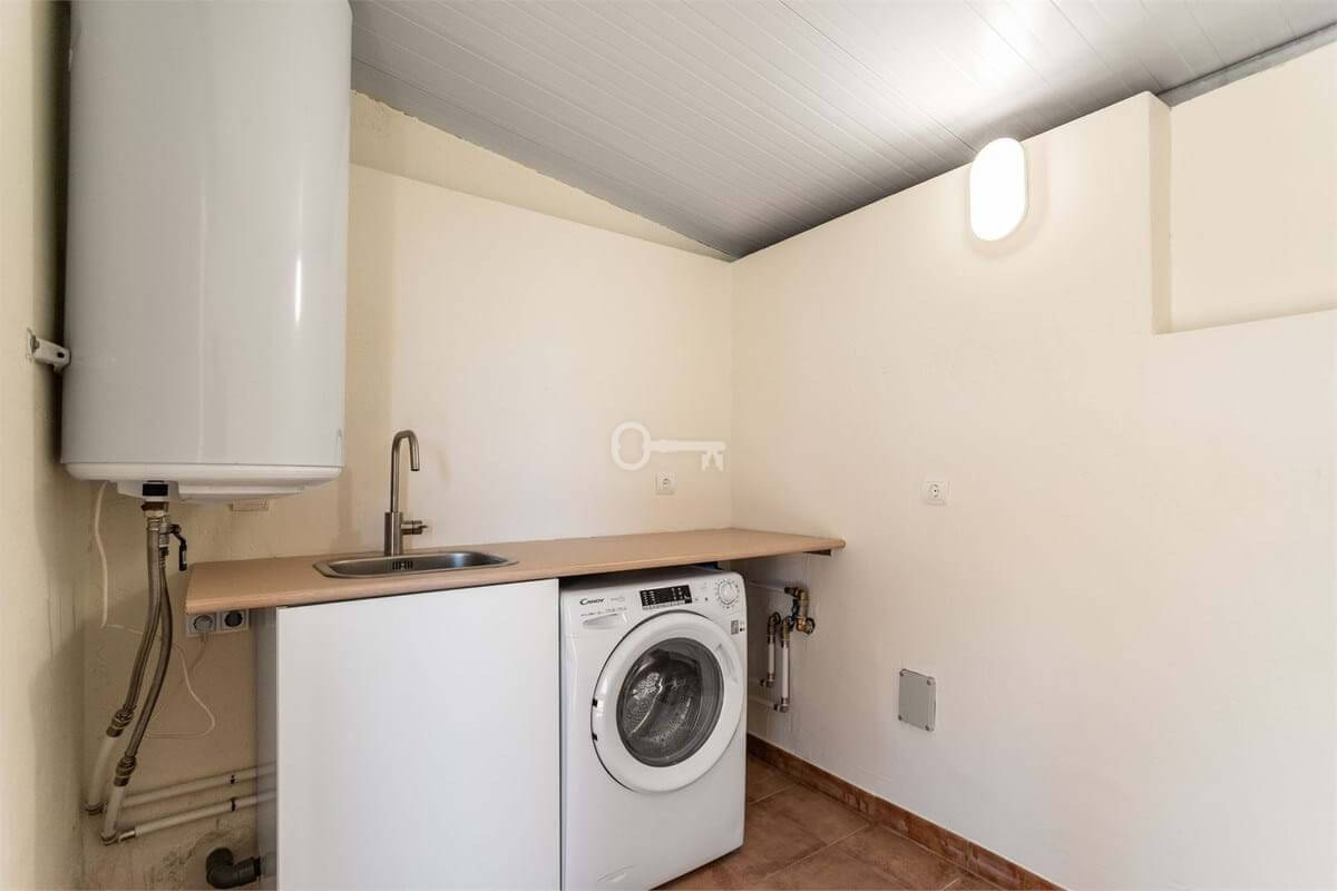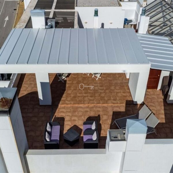 In total, you have access to nearly 100 sqm of terrace space, including a generous rooftop terrace reached via an internal staircase. Part of the rooftop terrace is enclosed and fitted with glass panels, creating a bright and wind-protected space ideal for both relaxation and social gatherings. There is also an outdoor shower with hot and cold water, as well as a practical laundry area. Open views of the surroundings and glimpses of the sea make this the perfect place to enjoy the sun, create an outdoor kitchen, or design a lounge area.