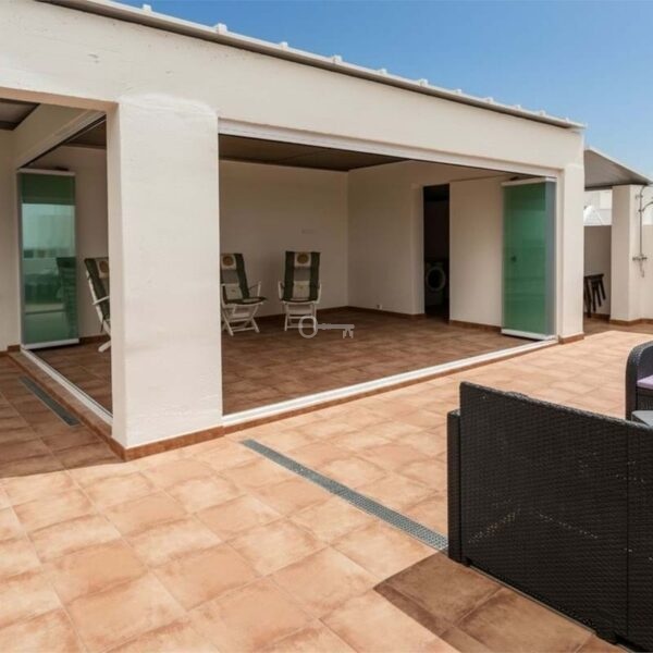 The property features a thoughtfully designed layout with two spacious bedrooms, both with en-suite bathrooms, providing a sense of comfort and privacy. The bright living room forms the heart of the home, with large glass panels that are now fully installed, allowing plenty of natural light to flow in and opening onto two private terraces with different orientationsperfect for enjoying both morning sun and evening light.