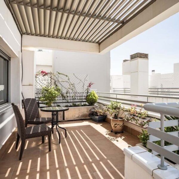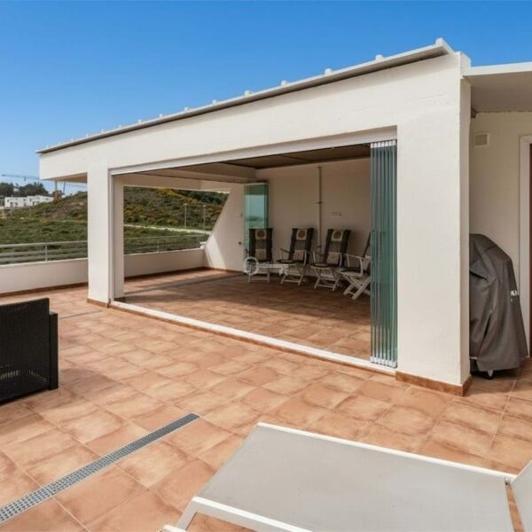 Welcome to an elegant and well-designed penthouse of high standard, located at the very top of the well-maintained urbanisation Vitania in La Cala de Mijas. Here you enjoy total privacy, open views, and a and peaceful environment within a gated community offering three communal pools, lush gardens, and garage facilities.