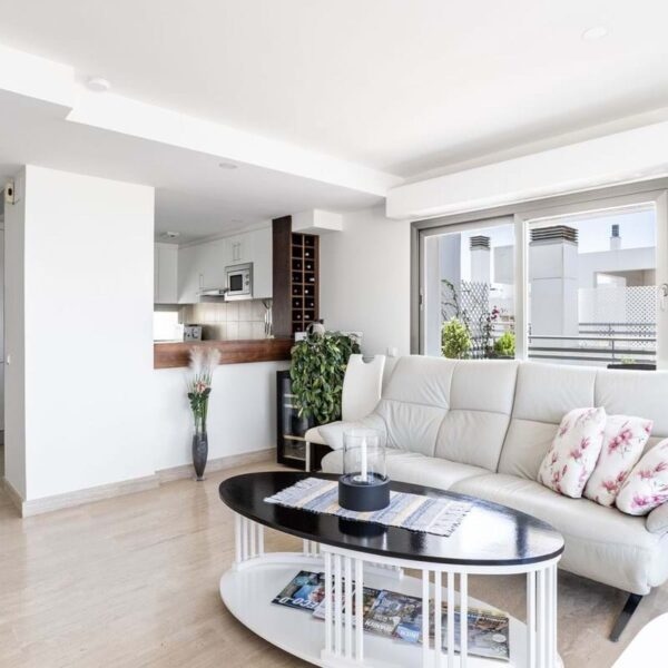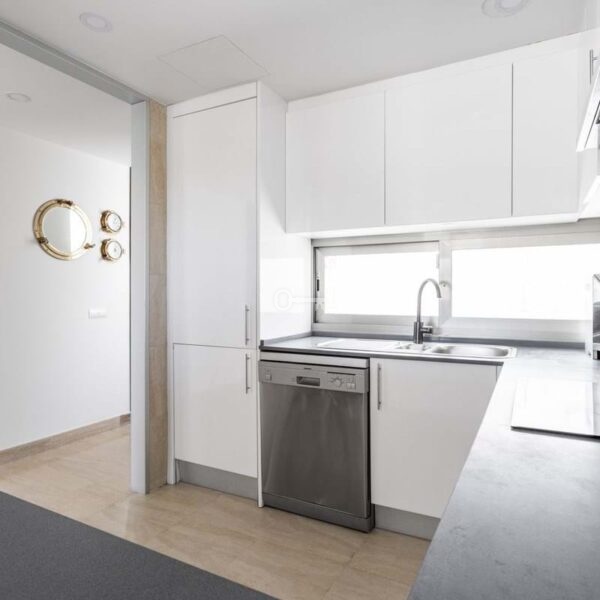 The stylish interior is defined by modern design, light flooring, clean lines, and carefully selected materials. The fully equipped kitchen includes integrated appliances, ample workspace, and storage. Central air conditioning for both cooling and heating, controlled via Airzone, ensures a comfortable indoor climate all year round. The apartment is also equipped with a water filtration system that filters all water in the home, providing clean and fresh water throughout.