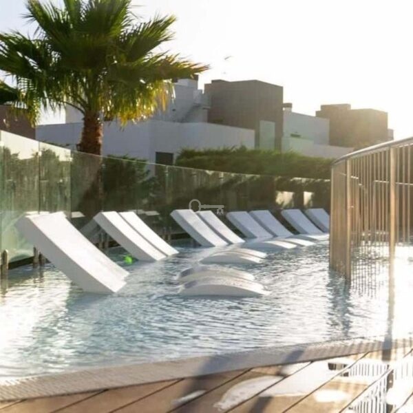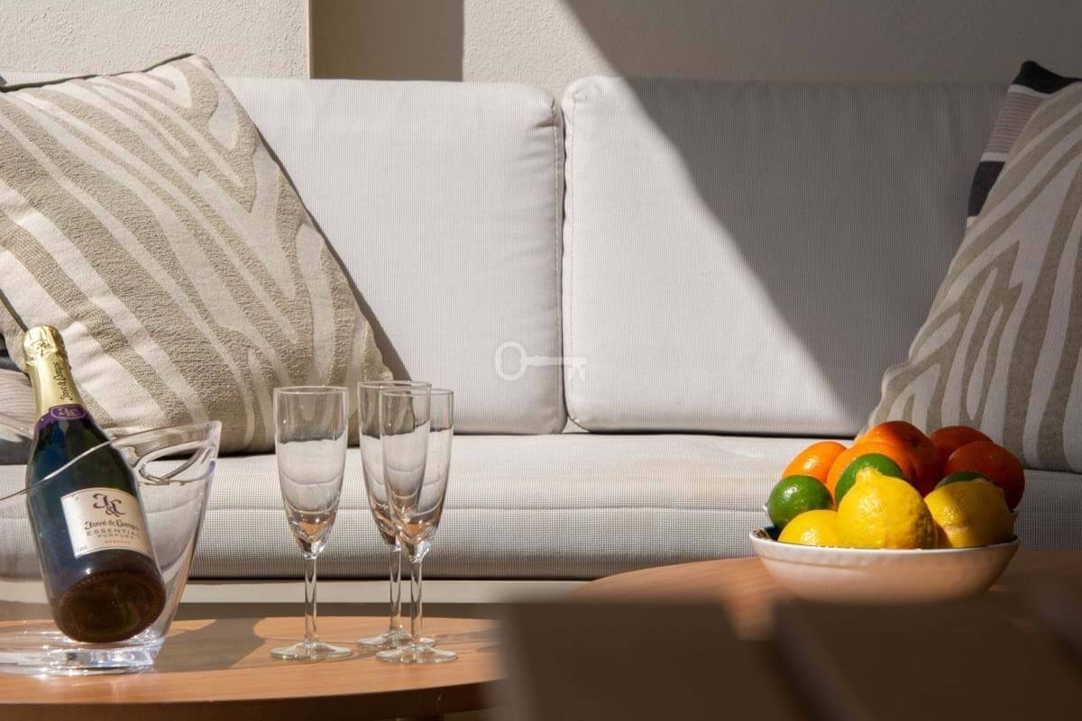 The apartment is equipped with first-class appliances and a number of upgrades. High-quality materials have been used, and the apartment is elegantly decorated with high-quality furniture and offers 2 spacious bedrooms, 2 spacious bathrooms (one ensuite), and has stunning views of the sea and pool area from the west-facing terrace, and on the east-facing terrace you can enjoy your morning coffee in the sun.