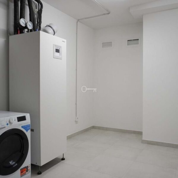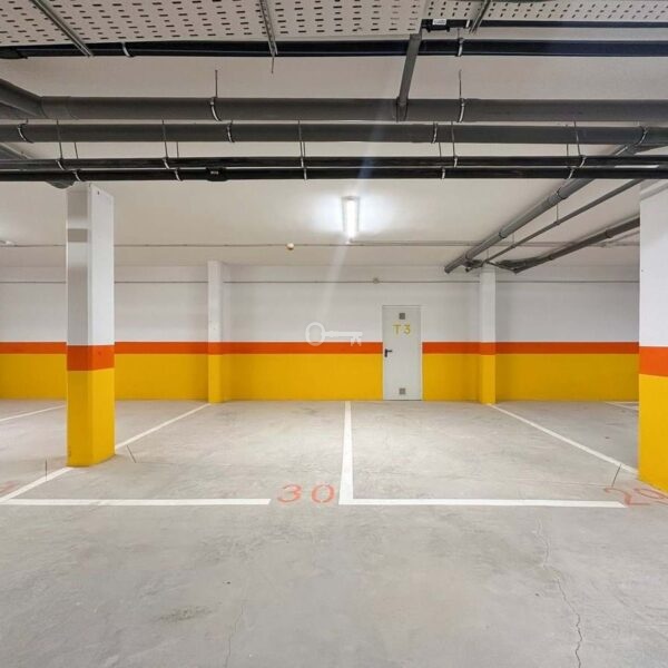 The apartment also benefits from two private parking spaces and an additional 16.29 m² storage room located in the garage directly behind the parking spaces.