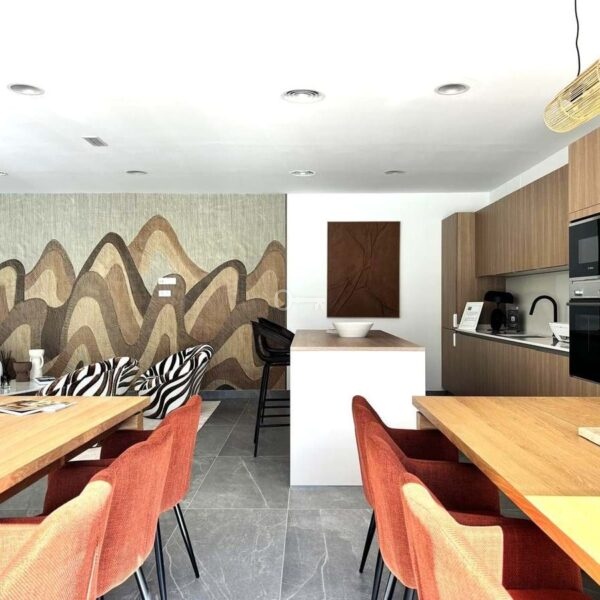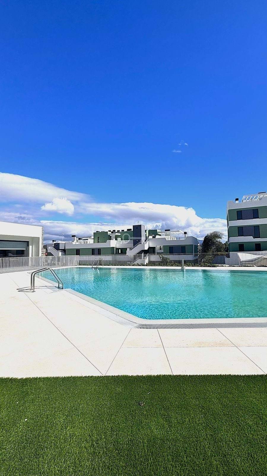 The development is recently built and offers a resort-style lifestyle: outdoor swimming pool, fully equipped gym, sauna, and coworking/multipurpose space.