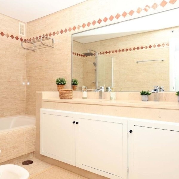 Ten pięknie zmodernizowany apartament na parterze w La Mairena w Marbelli oferuje 2 sypialnie, 2 łazienki i 138 m² jasnej przestrzeni życiowej w spokojnej, zamkniętej społeczności otoczonej naturą. Układ na otwartym planie obejmuje designerską kuchnię, jadalnię i przeszklony taras idealny jako drugi salon lub domowe biuro. Prywatny ogród zapewnia bezpośredni dostęp do zagospodarowanych terenów wspólnych i oferuje wspaniałe widoki na morze i góry z orientacją słoneczną na południowy zachód.
