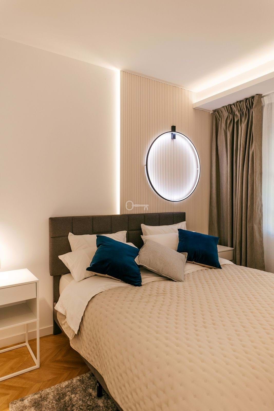 W pełni umeblowane: Apartament jest w pełni umeblowany eleganckimi meblami i nowoczesnym wystrojem. Dostęp do Internetu jest możliwy za pośrednictwem Wi-Fi i połączenia światłowodowego, co zapewnia płynną łączność.