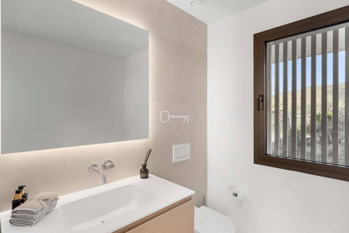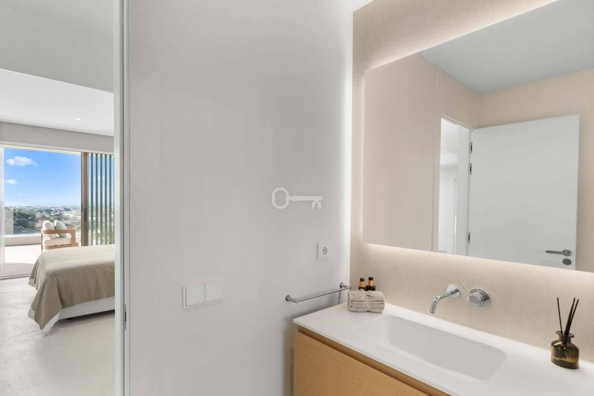 Apartament składa się z 3 sypialni, 2 pełnych łazienek i toalety dla gości. Ma powierzchnię użytkową 124,92 m² i spektakularny taras o powierzchni 104,13 m², idealny do korzystania z klimatu Costa del Sol przez cały rok. Dzięki swojej orientacji i uprzywilejowanej lokalizacji nieruchomość oferuje wspaniałe panoramiczne widoki na morze, pole golfowe i góry.