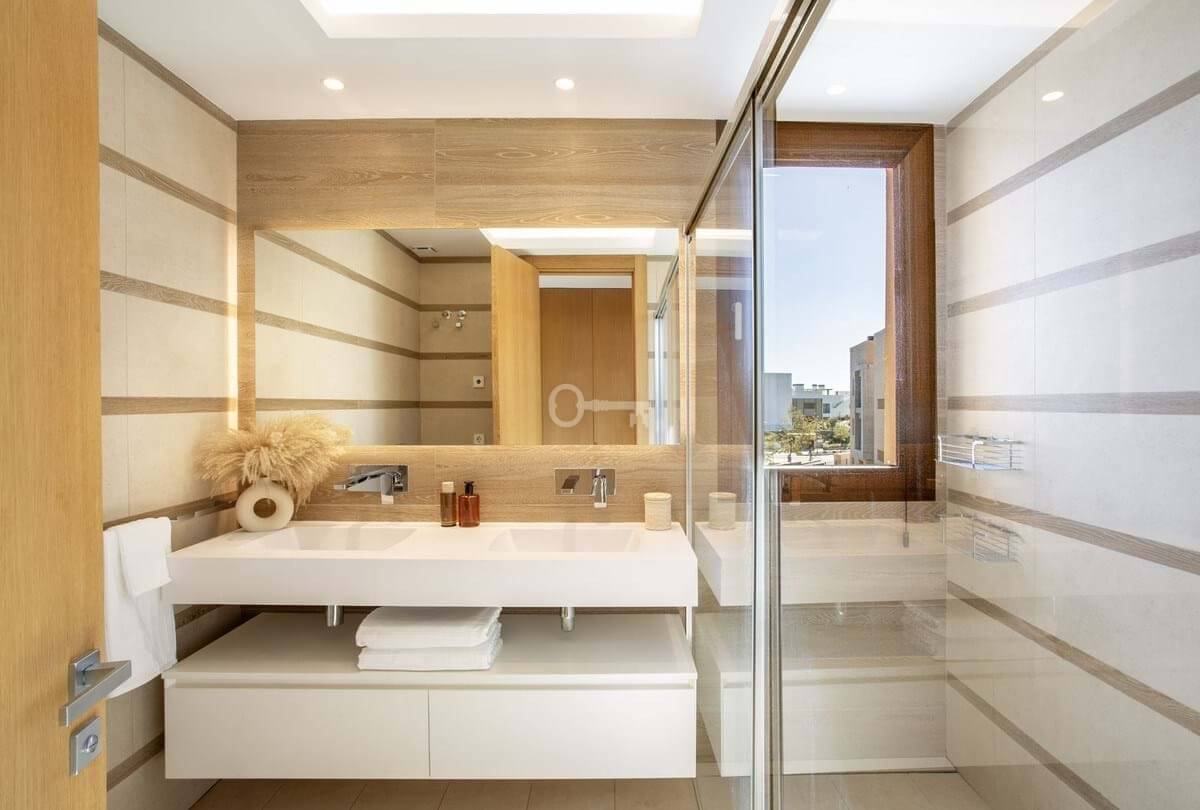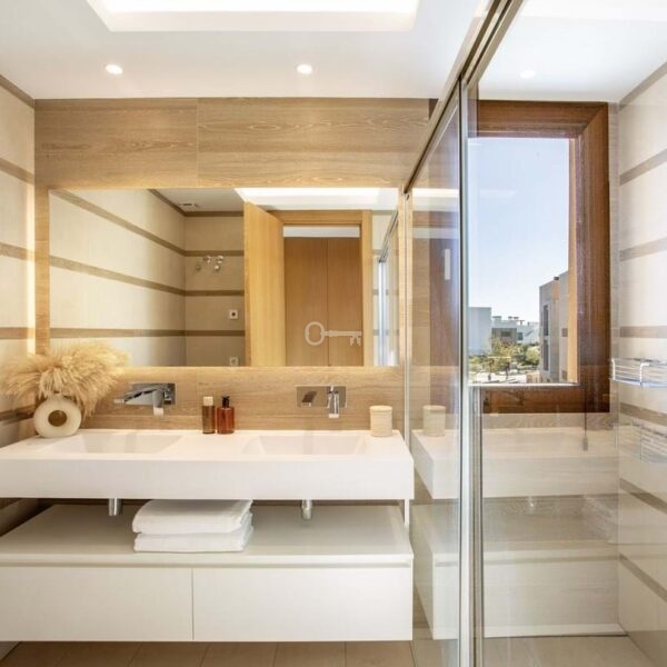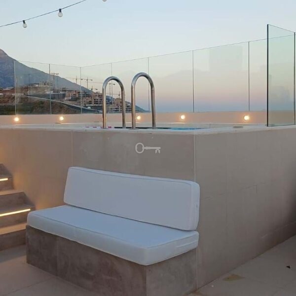 Nieruchomość ma 3 sypialnie i 2,5 łazienki i oferuje ogromny salon / kuchnię na otwartym planie o powierzchni ok. 50 m2. Z salonu i głównego apartamentu dostępny jest super zadaszony i niezadaszony taras, który następnie prowadzi do imponującego solarium na dachu, które zostało w pełni dostosowane z podgrzewanym małym basenem, toaletą dla gości, prysznicem i kuchnią do grillowania z lodówkami i zamrażarką – przykrytą elektryczną pergolą.