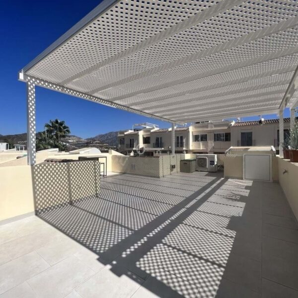 A spiral staircase takes you to the sun terrace with 360 degrees over the coast with the majestic La Concha mountains as a backdrop.
