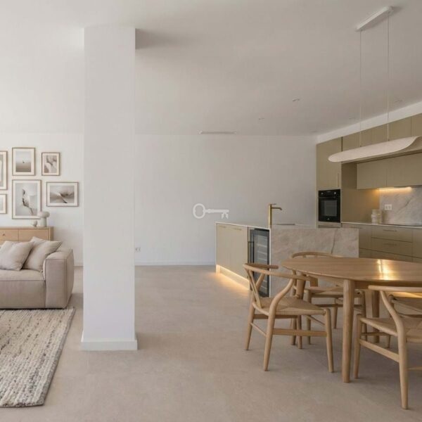 The heart of the home is an expansive living area that prioritizes flow and natural illumination. The renovation has stripped away the unnecessary, leaving behind a canvas of soft textures, organic tones, and high-end finishes. An abundance of floor-to-ceiling glass ensures the golden Andalusian sun is a permanent guest.