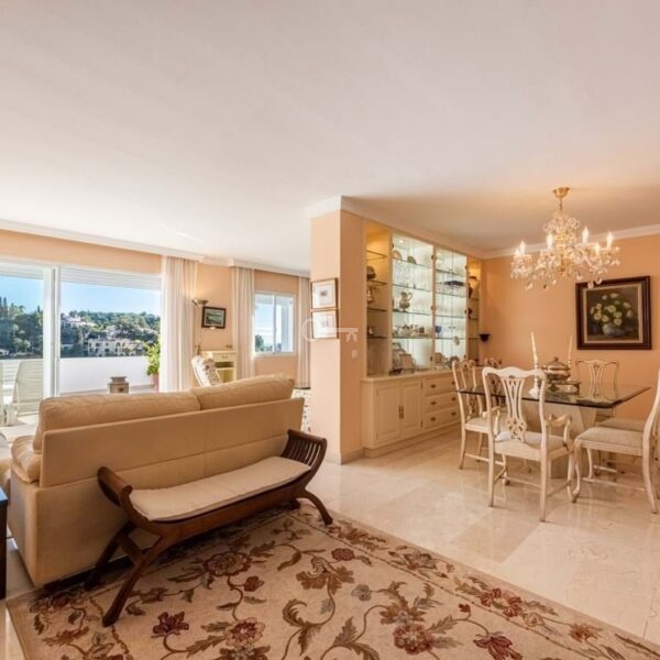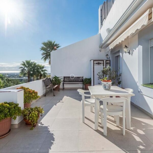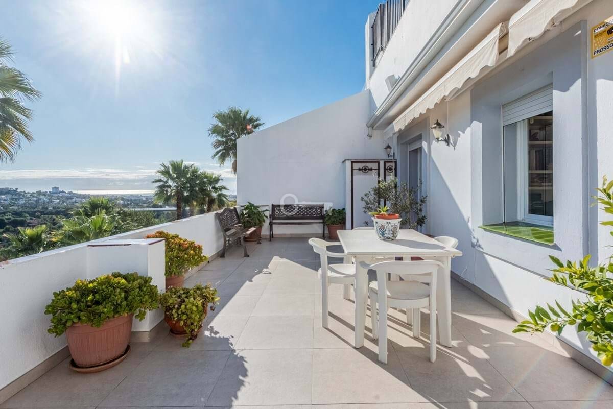 This bright and spacious apartment is a true gem! The airy living room offers both a dining area and direct access to a stunning east-facing terrace of 40 square meters. Here, you can bask in the morning sun and take in the spectacular views of the mountains and the sea. The terrace has plenty of space for a dining table for entertaining guests and a seating area for creating unforgettable moments.
