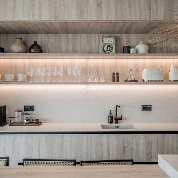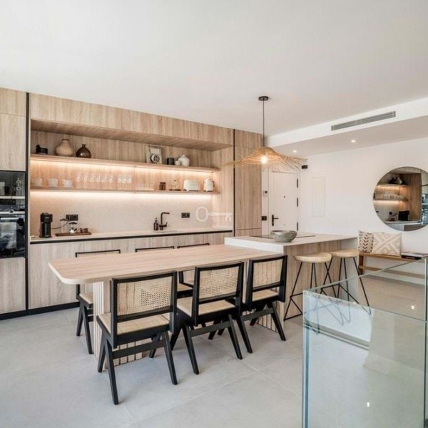 Po wejściu wita nas salon i jadalnia na otwartym planie, które emanują ciepłem i elegancją. Naturalne światło zalewa przestrzeń, podkreślając nowoczesne wykończenia i wyrafinowany wystrój. Najnowocześniejsza kuchnia to rozkosz szefa kuchni, szczycąca się eleganckimi szafkami i najwyższej klasy urządzeniami.