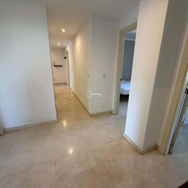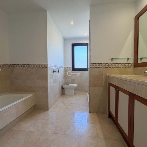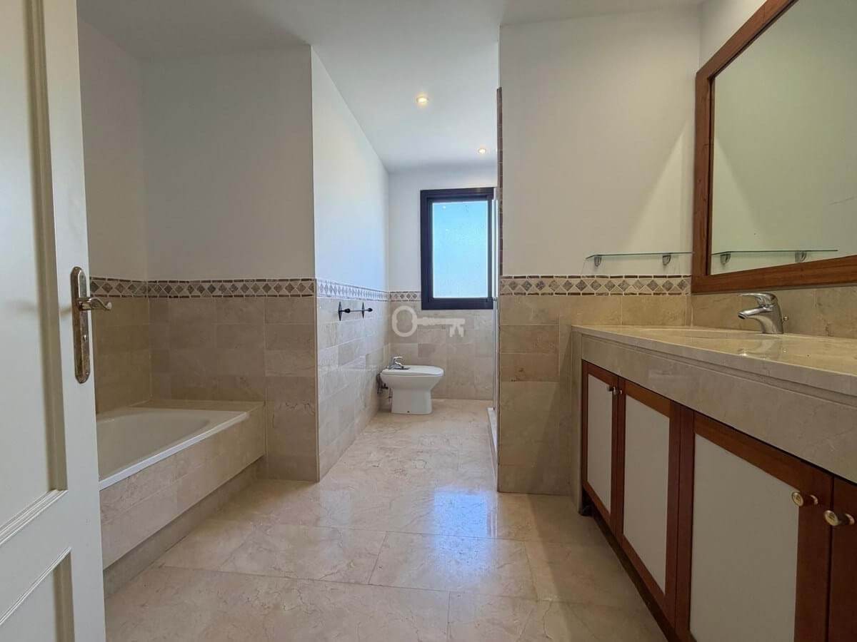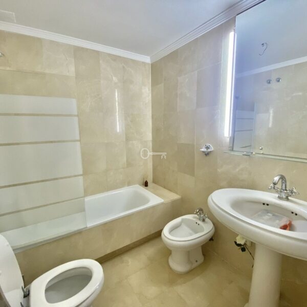 The property offers three bedrooms. The main bedroom features an en-suite bathroom, providing extra privacy and comfort. In addition, the apartment includes two more full bathrooms that serve the rest of the home.