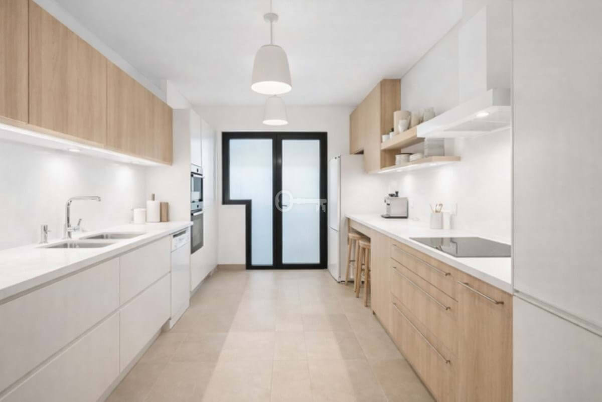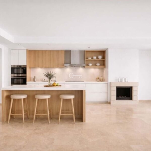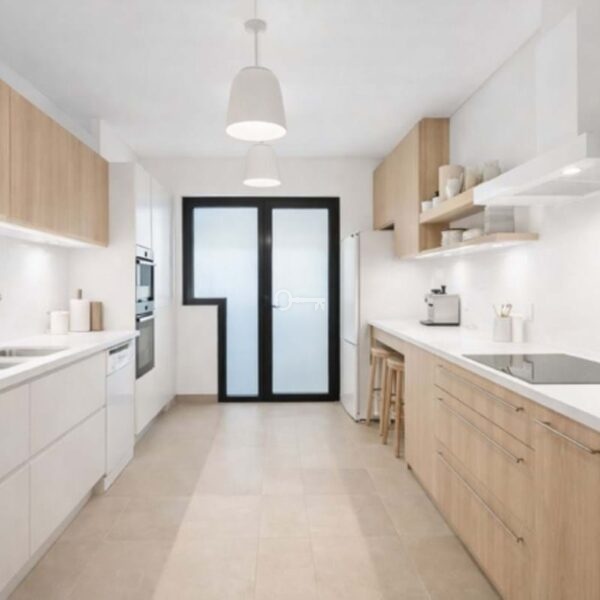 The new owner has several options: the kitchen can be reinstalled in its original location, returning the apartment to a two-bedroom layout, or it can be integrated into the living area as an open-plan kitchen, allowing the property to be configured as a three-bedroom apartment.