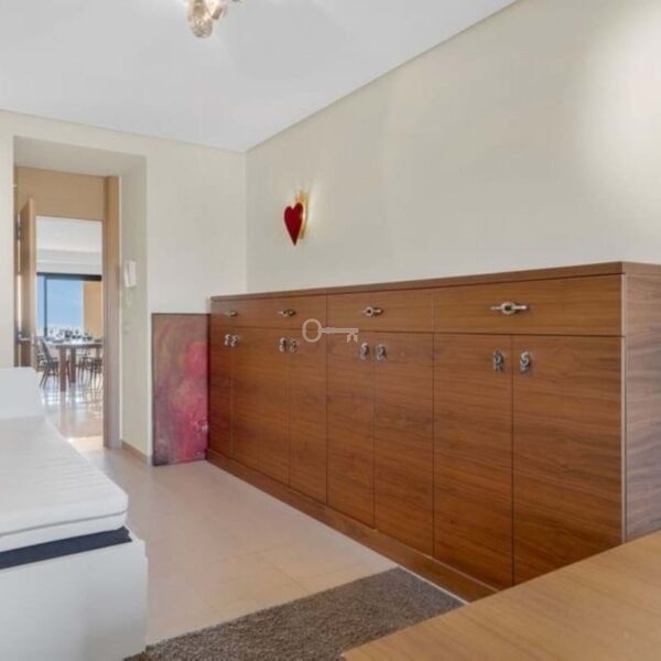 The spacious and bright apartment features a living and dining area with a cosy fireplace and direct access to a large southwest-facing terrace of 48 m², where you can enjoy stunning panoramic views and beautiful sunsets.