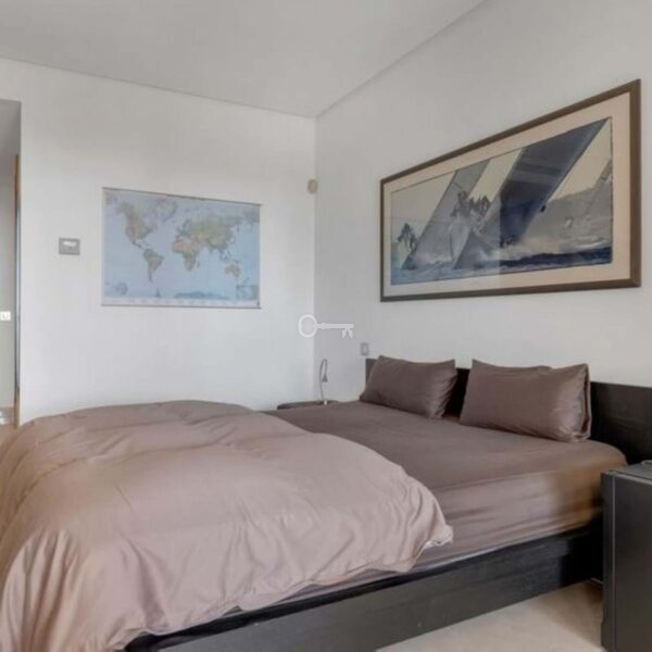 The master bedroom has direct access to the terrace and features an en-suite bathroom with a jacuzzi. The guest bedroom also has a bathroom with a shower.
