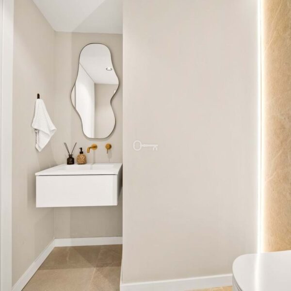 Refurbished with impeccable attention to detail, the home showcases a bright open-plan design with distinct areas for relaxing, dining, and socialising. The kitchen comes fully equipped and features warm oak details and a central island, flowing effortlessly onto a generous terrace. From here, you can enjoy sweeping vistas of the golf course and its serene lake, La Concha Mountain, and the Mediterranean Sea.