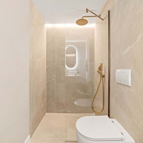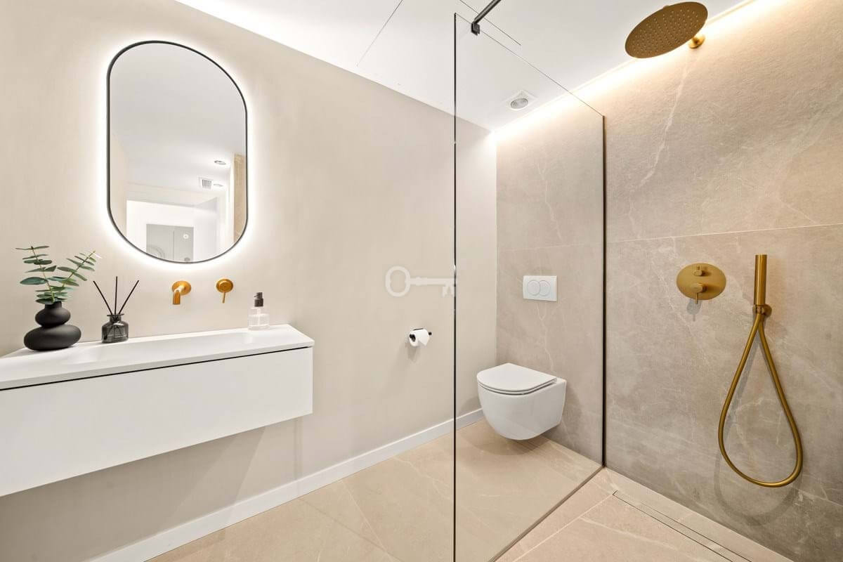 The master suite boasts direct terrace access and spectacular sea views, while the two additional bedrooms each offer en-suite bathrooms. A guest cloakroom and a discreet utility space enhance everyday practicality.