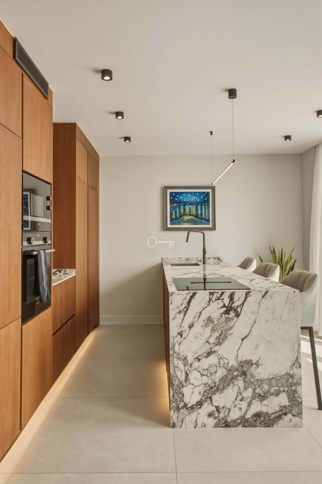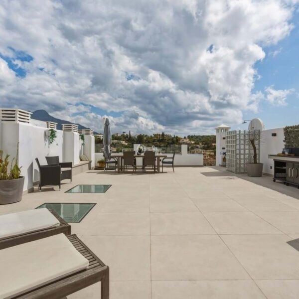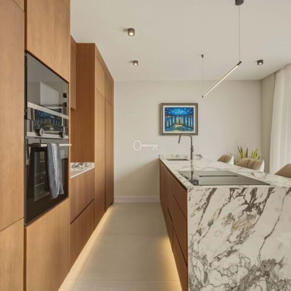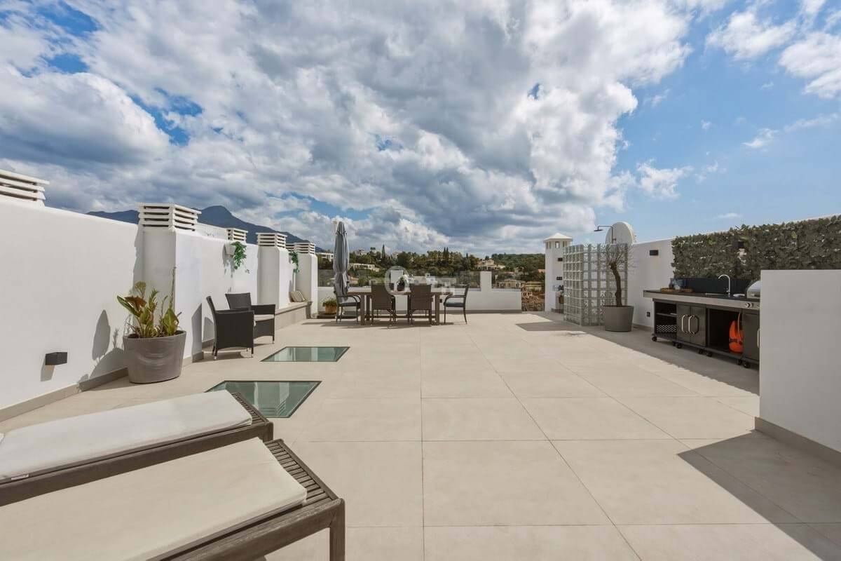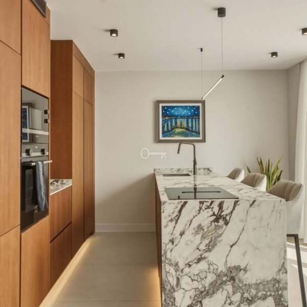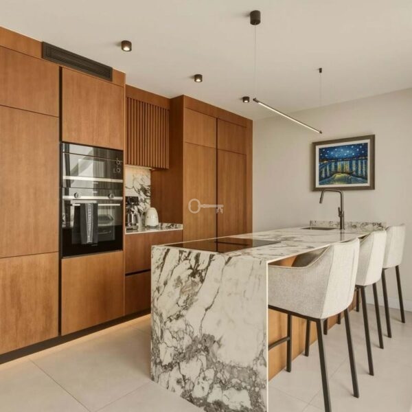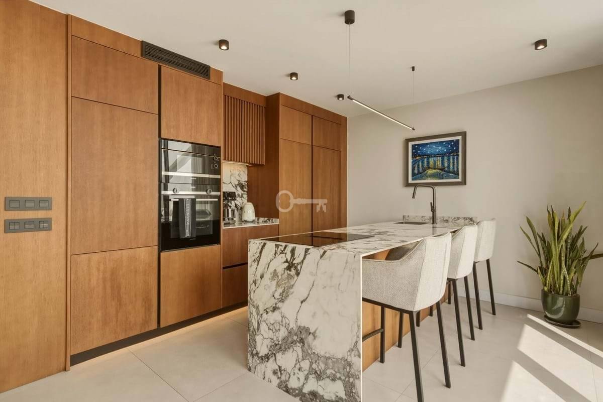 The penthouse boasts generous terrace spaces on both the main level and the private rooftop terrace. Upstairs, youll find a fully equipped outdoor kitchen an ideal setting for social gatherings, dining, and relaxing evenings while enjoying beautiful sea views.