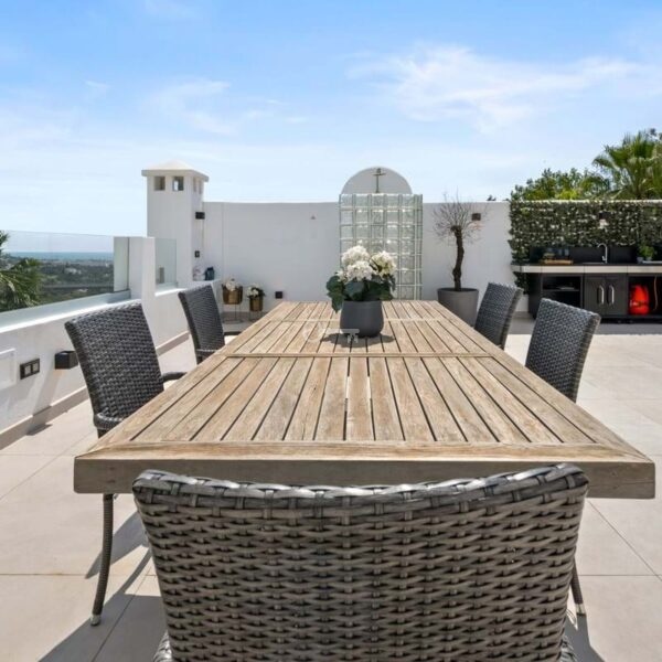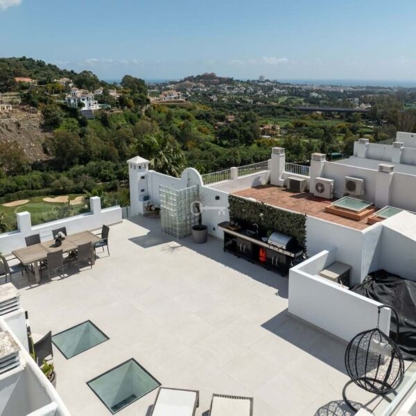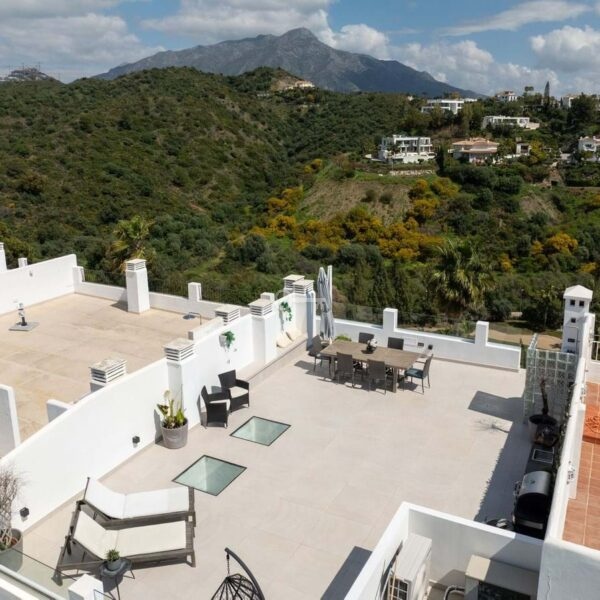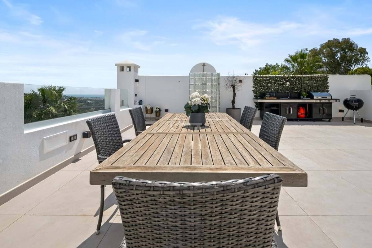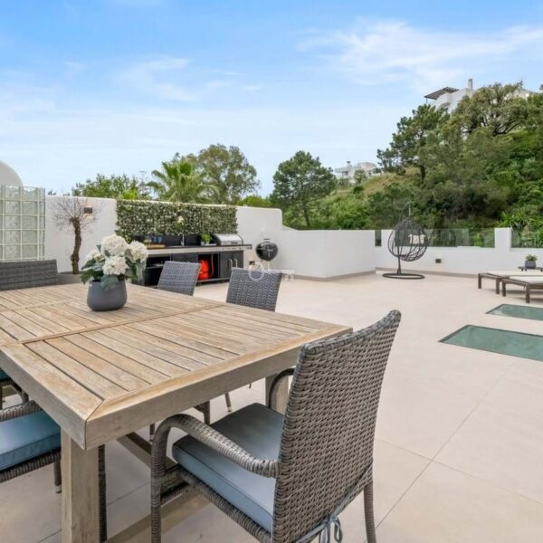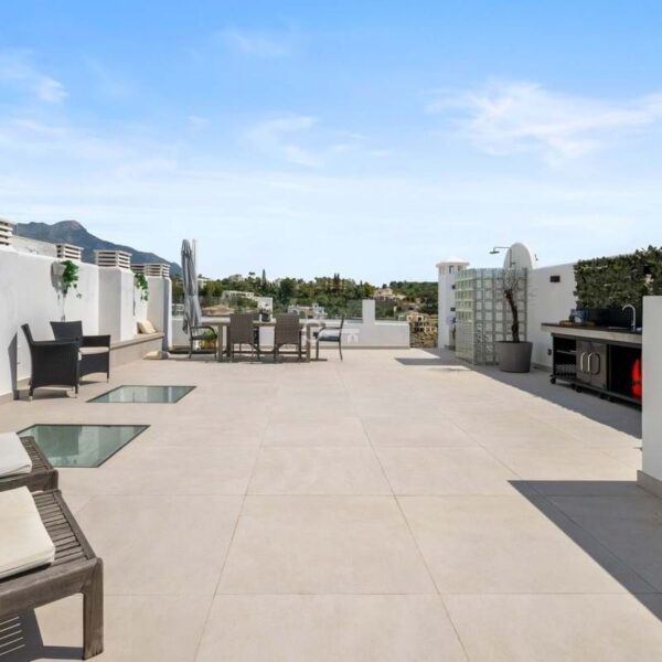 Nestled in a quiet residential area of La Quinta, this exquisitely renovated two-bedroom penthouse blends contemporary elegance with comfort and panoramic scenery. Just moments from the renowned La Quinta Golf Club, along with a 5-star spa and a state-of-the-art fitness center, it delivers an exceptional lifestyle in one of Marbellas most desirable areas.