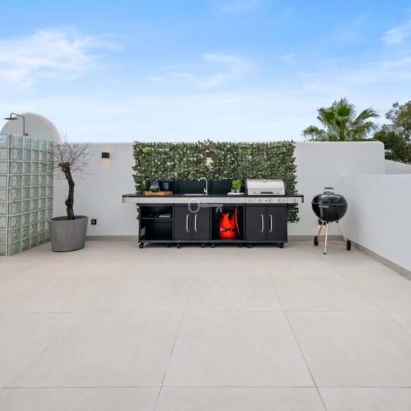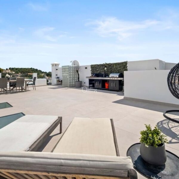 Designed for enjoying the Mediterranean lifestyle, the penthouse features spacious terraces on the main floor as well as a private rooftop retreat. The upper level is equipped with a complete outdoor kitchen, creating the perfect space for entertaining, dining, or unwinding while taking in stunning sea views.
