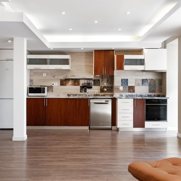 Po remoncie apartament był bardzo rzadko używany, dzięki czemu jest w doskonałym stanie. Przeszedł bardzo staranną renowację, koncentrując się na oferowaniu przestronnych pomieszczeń socjalnych, wykorzystując podwieszane sufity i oświetlenie do zdefiniowania różnych przestrzeni. Zastosowanie drewnianych podłóg w całym mieszkaniu zostało wybrane ze względu na komfort, uzupełniając klasyczny styl budynku.