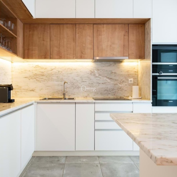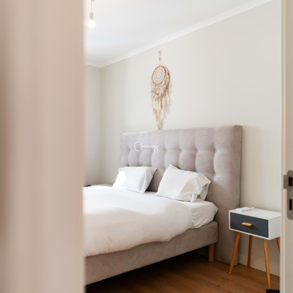 Apartament jest bardzo przyjemny, nowoczesny i komfortowy, z pływającą podłogą, wbudowanymi szafami, klimatyzacją, podwójnie oszklonymi oknami i wbudowanym oświetleniem. Składa się z dwóch łazienek, jednej socjalnej i jednej pełnej prywatnej łazienki z wanną.