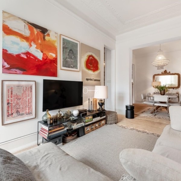 Ten apartament zachowuje oryginalny urok budynku, taki jak podłogi z litego drewna, wysokie sufity z ozdobnymi detalami i okna balkonowe, które zalewają przestrzenie naturalnym światłem, i ma w pełni wyposażoną kuchnię.