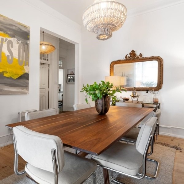 Apartament jest pierwotnie apartamentem z 3 sypialniami i salonem słonecznym, ale został przebudowany do obecnego formatu. Sypialnie są przestronne, biuro jest wszechstronne i idealne do pracy zdalnej lub jako przestrzeń kreatywna. Salon, przestronny i jasny, łączy się z elegancką jadalnią, tworząc przyjazne środowisko do przyjmowania przyjaciół i rodziny.