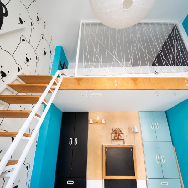 * pokoju dziecięcego z łóżkiem w formie antresoli,