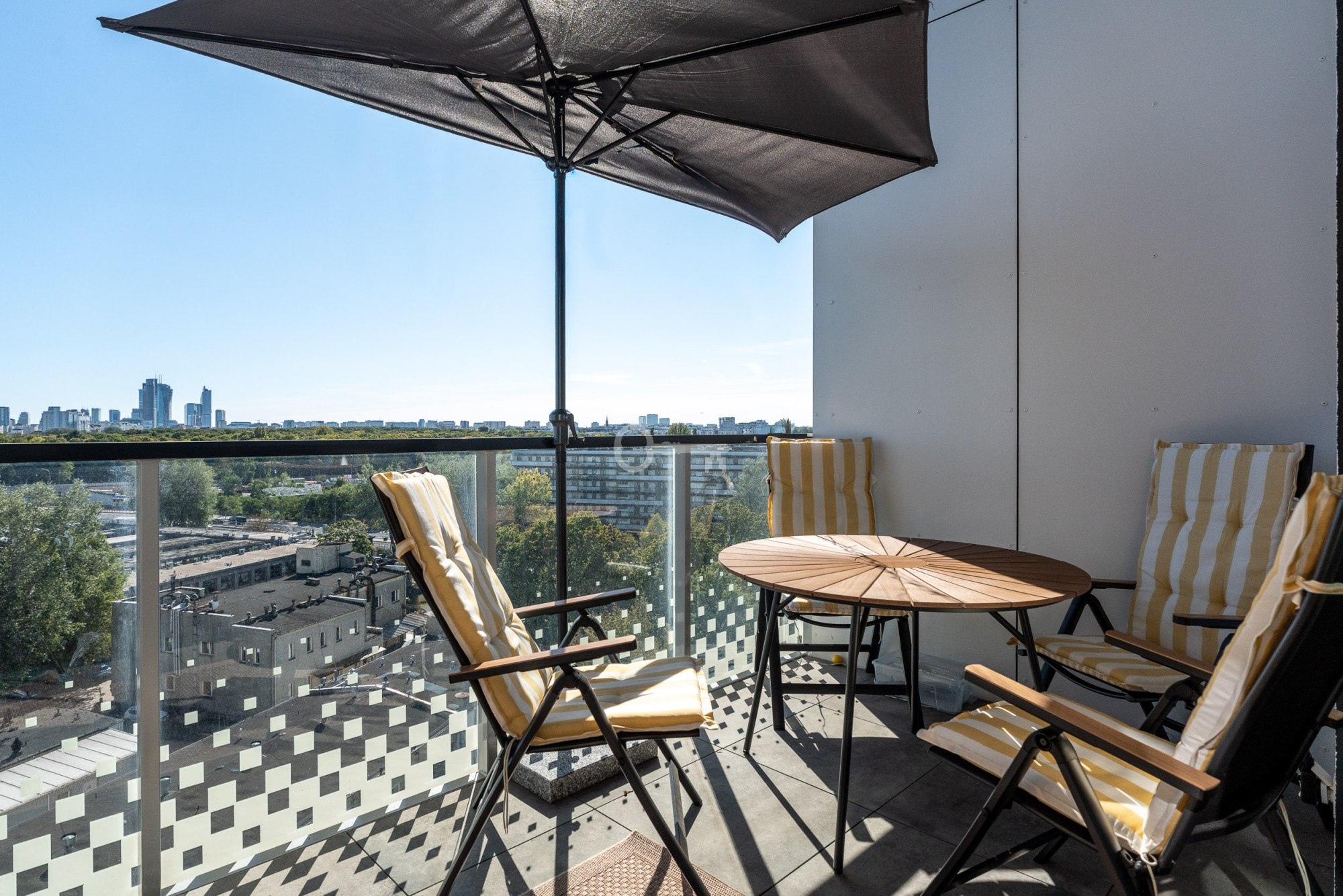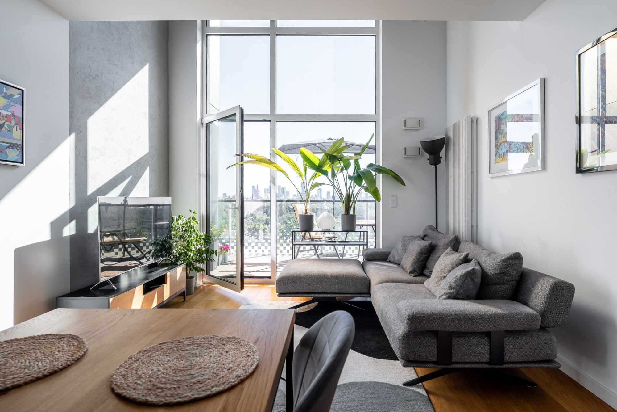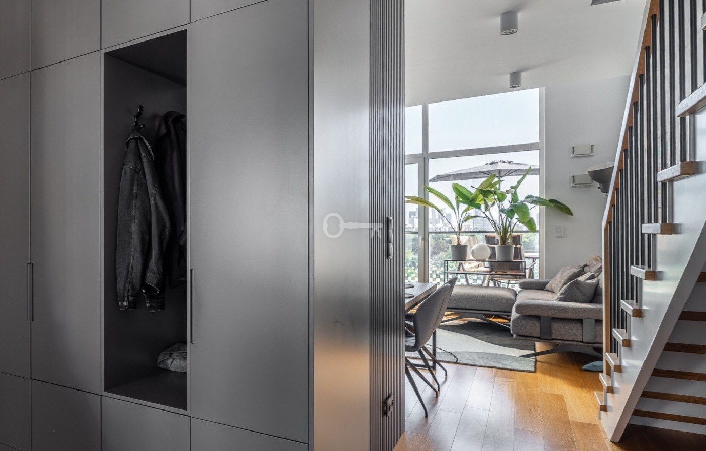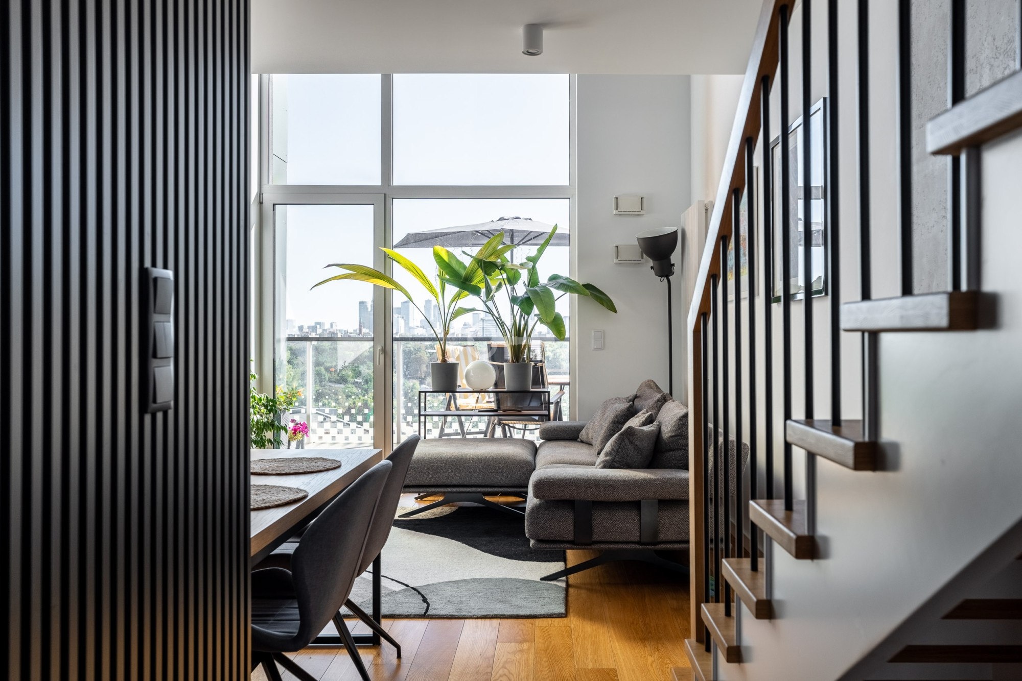 3 sypialnie + gabinet | 2 łazienki | prawie 6 metrów wysokości w salonie | ostatnie piętro | południowo-zachodni taras z widokiem na skyline Warszawy | klimatyzacja | 2 miejsca parkingowe | zamknięte osiedle z zadbanym patio