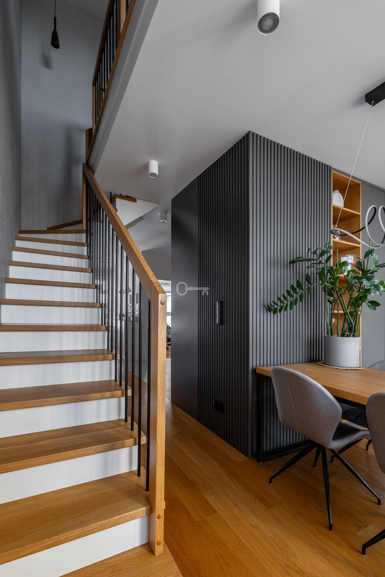 Apartament ma 107 m² powierzchni i położony jest na dwóch poziomach, na ostatnich kondygnacjach budynku.
