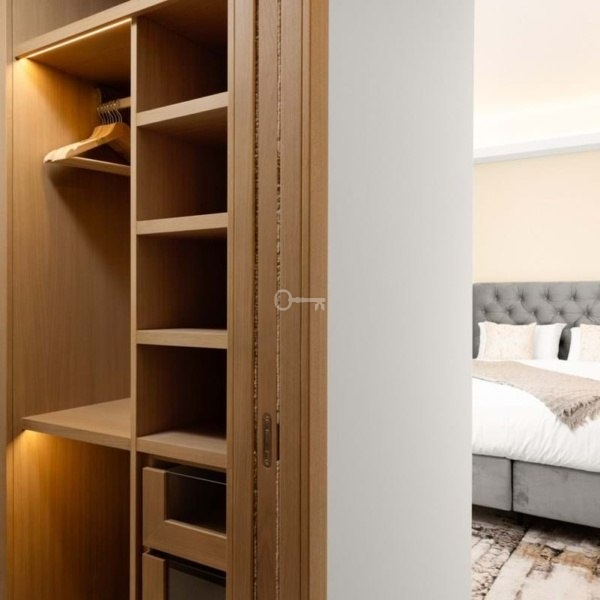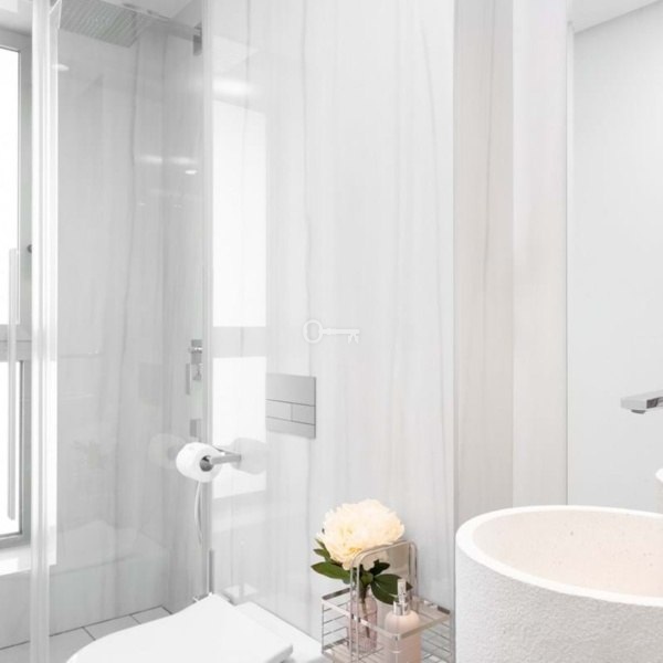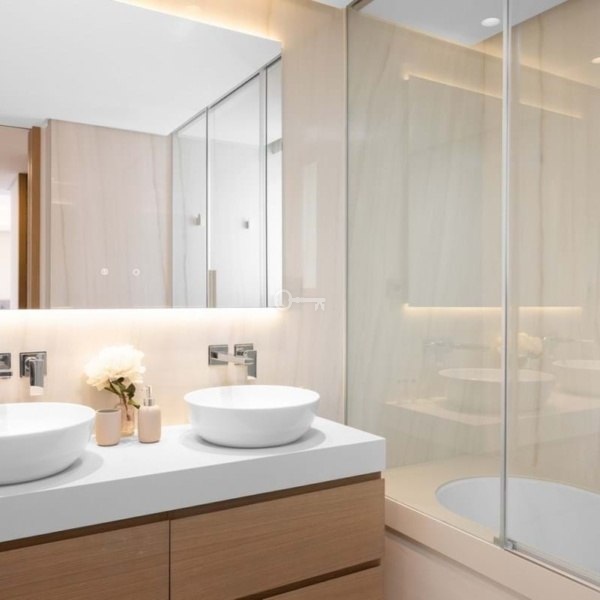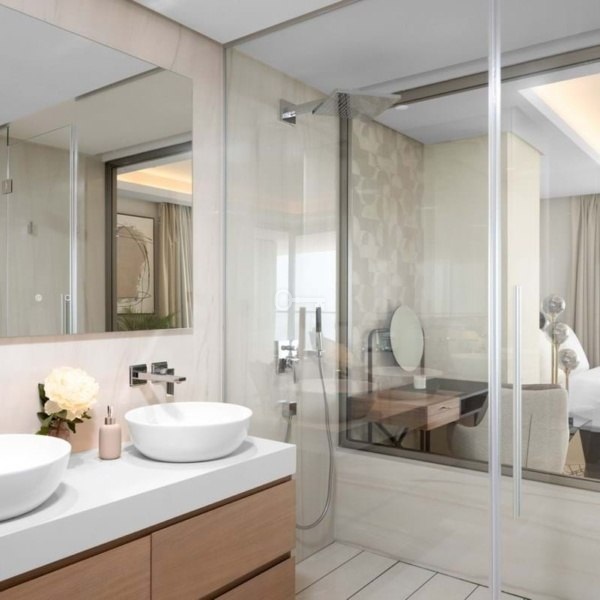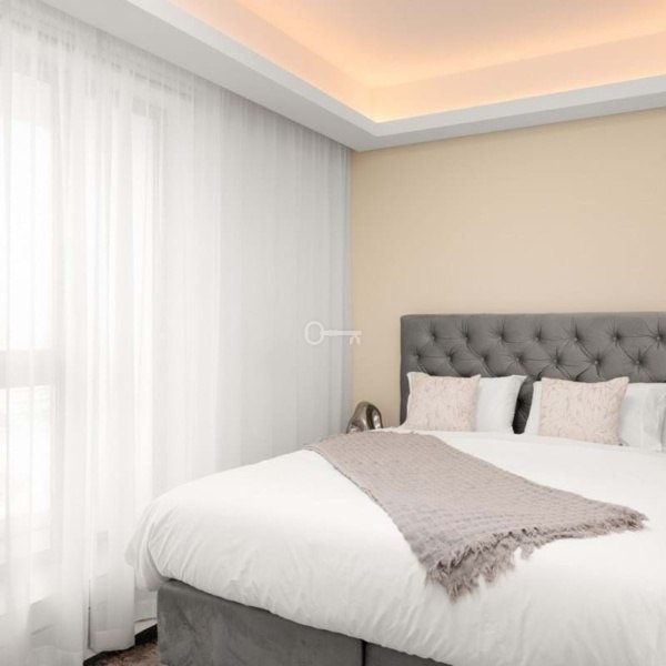 Ten elegancki apartament oferuje przestronny układ z trzema sypialniami i trzema łazienkami, wszystkie wykończone materiałami najwyższej jakości. Jego nowoczesny design został wzbogacony o najnowocześniejszą technologię inteligentnego domu, w tym ogrzewanie podłogowe, klimatyzację, szybkie Wi-Fi i inteligentny telewizor. Dodatkowo obejmuje dwa prywatne miejsca parkingowe, zapewniając wygodę i bezpieczeństwo.