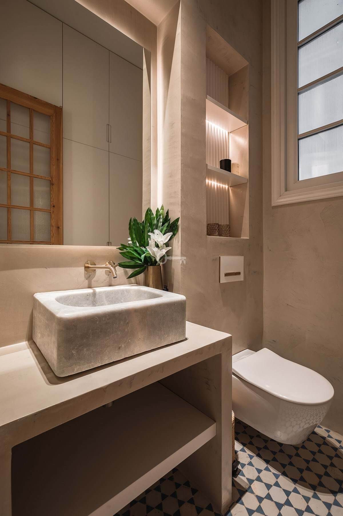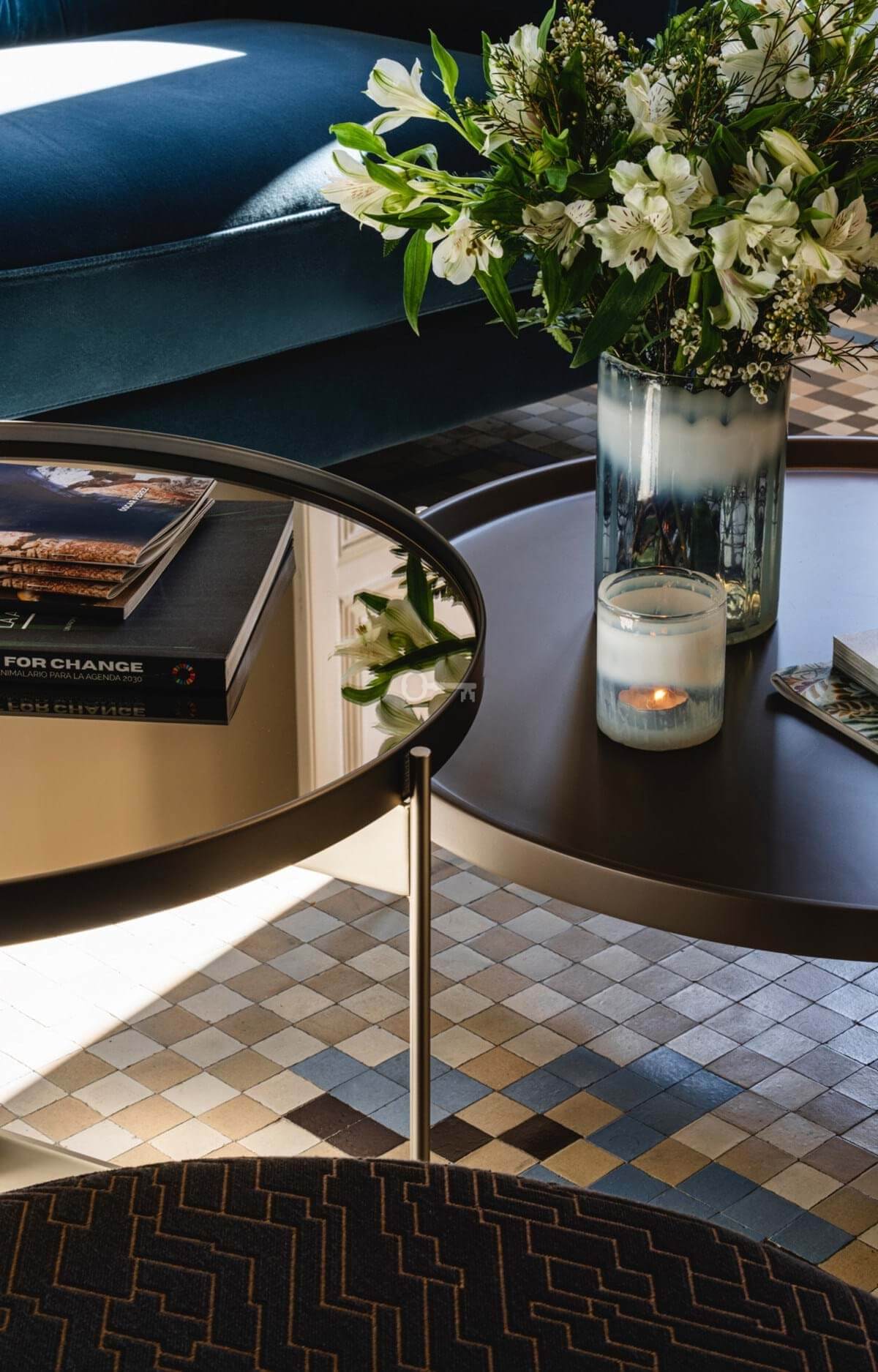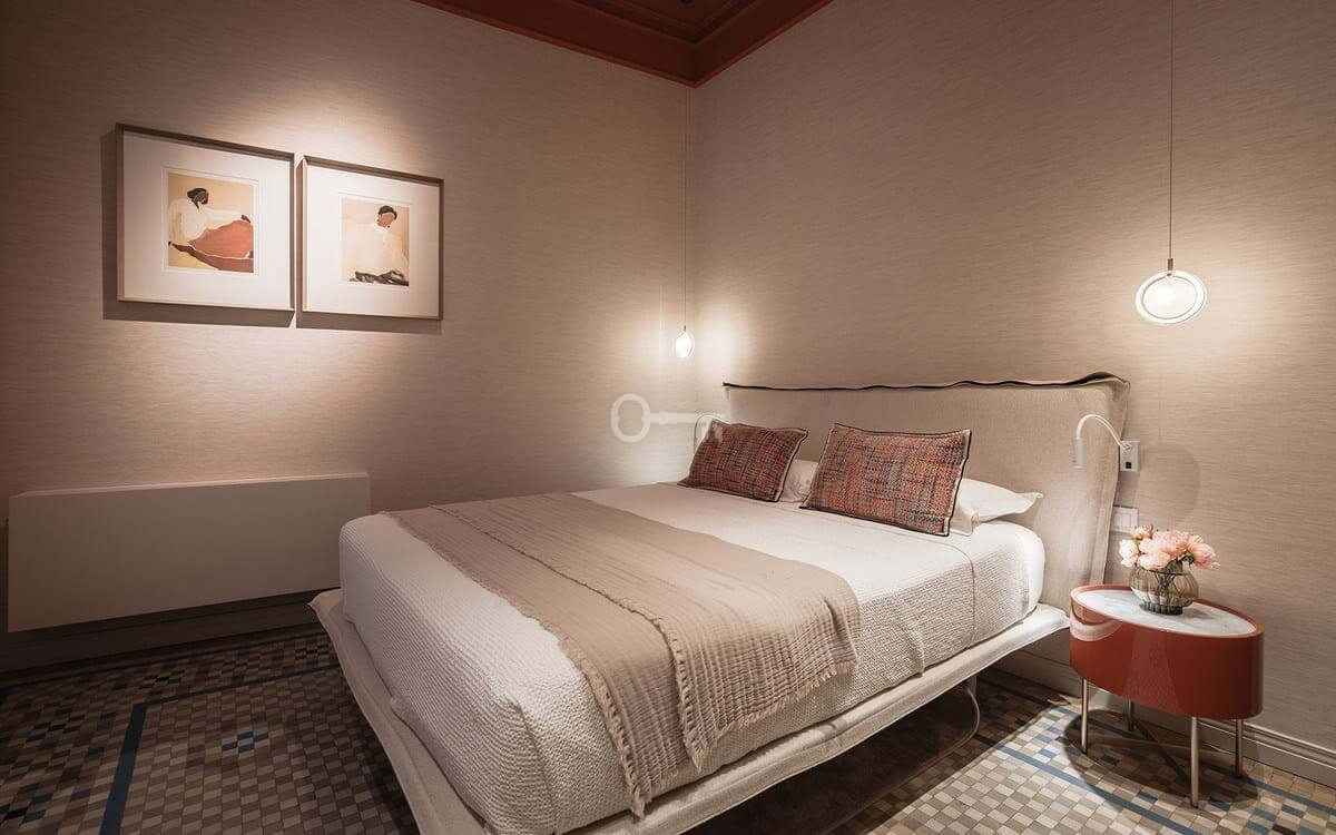Materiały i wykończenia odzwierciedlają staranne połączenie tradycji i współczesnego komfortu. Na ścianach znajduje się rzemieślniczy stiuk wapienny, mikrocement i ekologiczna farba Farrow & Ball. Oryginalna mozaika podłogowa Nolla, pieczołowicie odrestaurowana, została zachowana w większości nieruchomości, dodając charakteru i estetycznej spójności. Drzwi i okna z 1922 roku zostały odrestaurowane, zachowując oryginalną stolarkę i aktualizując sprzęt i mechanizmy, aby zapewnić funkcjonalność.