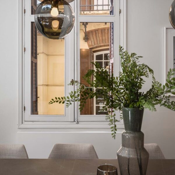Ta imponująca rezydencja umiejętnie łączy klasyczną elegancję swojej oryginalnej architektury ze spokojnym i jasnym współczesnym wystrojem wnętrz. Wysokie sufity, oryginalne listwy i duże okna harmonizują z meblami o czystych liniach, szlachetnymi materiałami i starannie dobranym wyborem opraw oświetleniowych, tworząc atmosferę, która jest zarówno wyrafinowana, jak i naturalna.