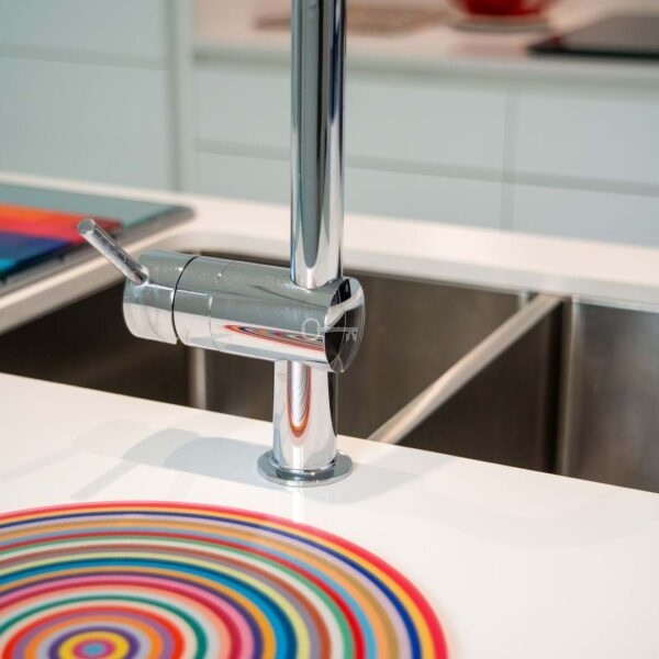 The main level features a spacious living and dining area seamlessly connected to an open plan kitchen equipped with high quality appliances, including oven, microwave, American fridge and dishwasher. A separate laundry area with washing machine and dryer is integrated into bespoke cabinetry.