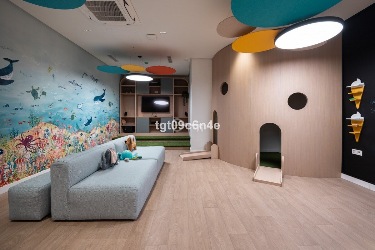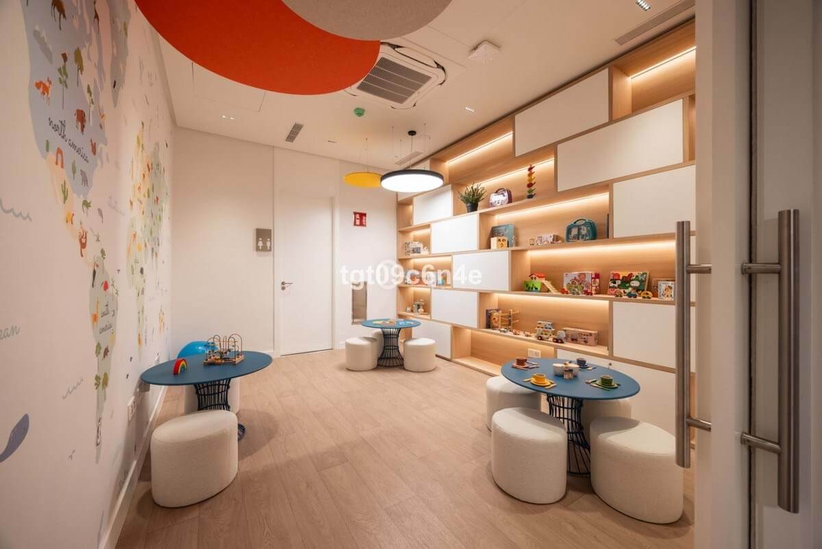 As for the communal areas, they truly make a difference, creating a living experience similar to a stay in an exclusive resort: the beach right on the doorstep, 2 heated pools (one indoor and one outdoor) and an additional (unheated) rooftop pool, a rooftop bar, a gourmet food hall, a children’s playroom, a fully equipped gym, a spa area with a Finnish sauna and Turkish bath, and a co-working space. There is also a concierge service during the day and 24-hour security.