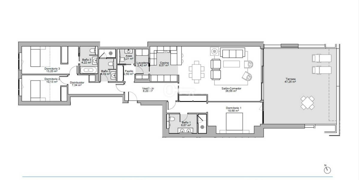 The apartment has a total of 145 m² built area (126.42 m² of usable interior space + 40.25 m² of covered exterior space + 7 m² of uncovered exterior space). Its perfect layout ensures maximum use of space, both in the living areas and in the bedrooms and bathrooms. You can see everything in detail in our video and virtual tour.