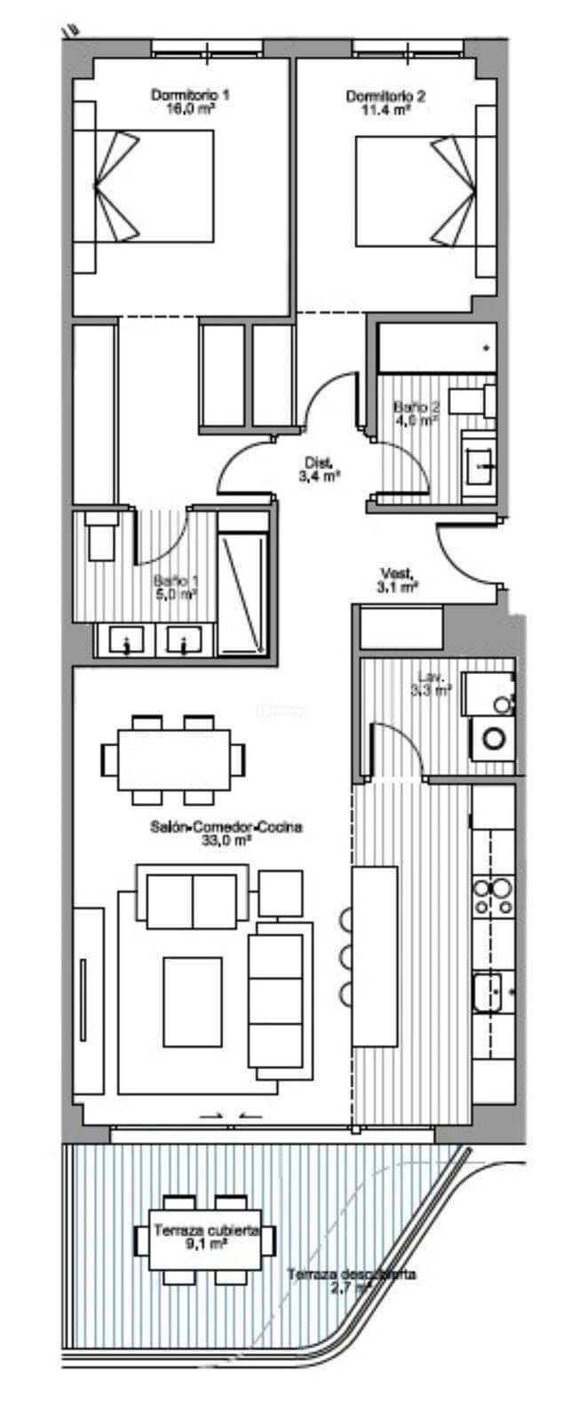 Designed to impress, this elegant third-floor apartment (with lift) is filled with natural light and offers beautiful open views. It features 2 spacious bedrooms and 2 stylish bathrooms, perfectly laid out for both comfort and modern living.