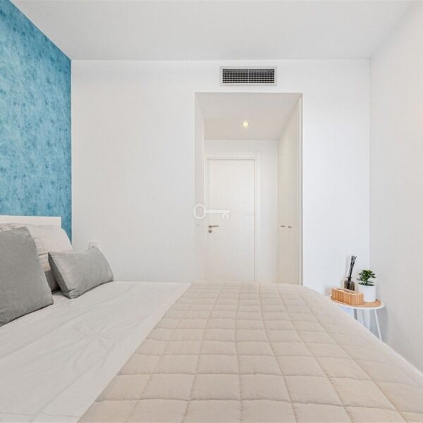 Ten jasny i przestronny apartament z 2 sypialniami i 2 łazienkami został zaprojektowany tak, aby zmaksymalizować naturalne światło i komfort. Jego dobrze zaplanowany układ tworzy otwarte, przestronne wnętrza, które płynnie przechodzą na duży taras z oszałamiającym widokiem na morze, oferując pełną prywatność idealną do relaksu lub rozrywki.