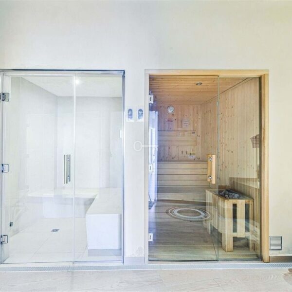 Wykończony w wysokim standardzie, apartament posiada okna sięgające od podłogi do sufitu z zamontowanymi moskitierami, modułowe szafy wnękowe oraz łazienki z najlepszymi kafelkami, termostatycznymi prysznicami i wysokiej jakości armaturą. Kuchnia jest w pełni wyposażona w szafki sięgające od podłogi do sufitu, blaty kwarcowe i zintegrowane urządzenia, w tym płytę indukcyjną, piekarnik, kuchenkę mikrofalową, lodówkę, zmywarkę, pralkę i suszarkę. Centralna klimatyzacja oraz zaawansowana izolacja akustyczna i termiczna.