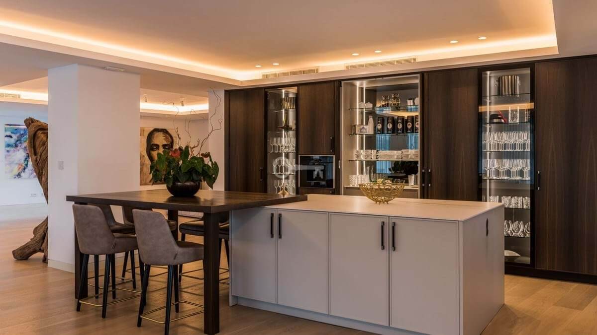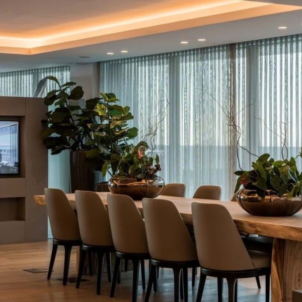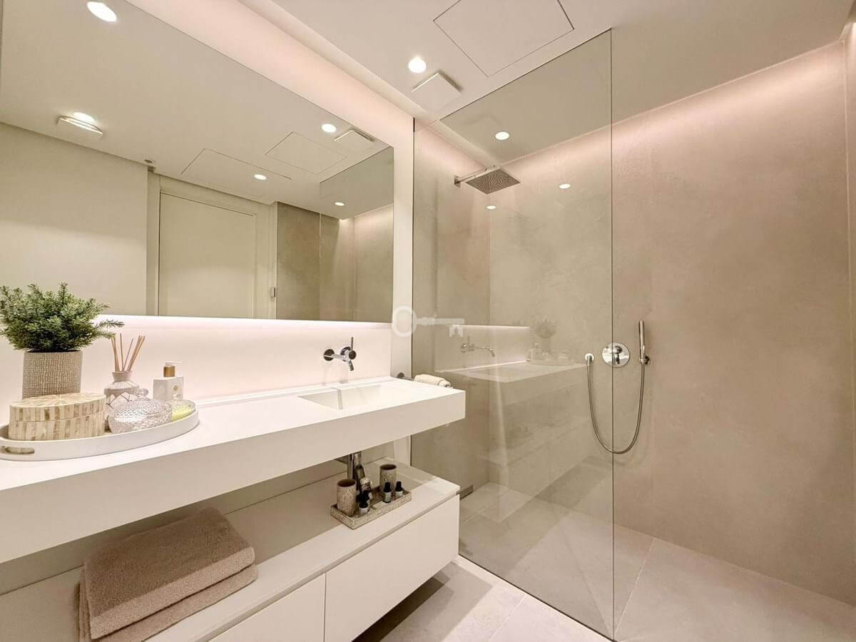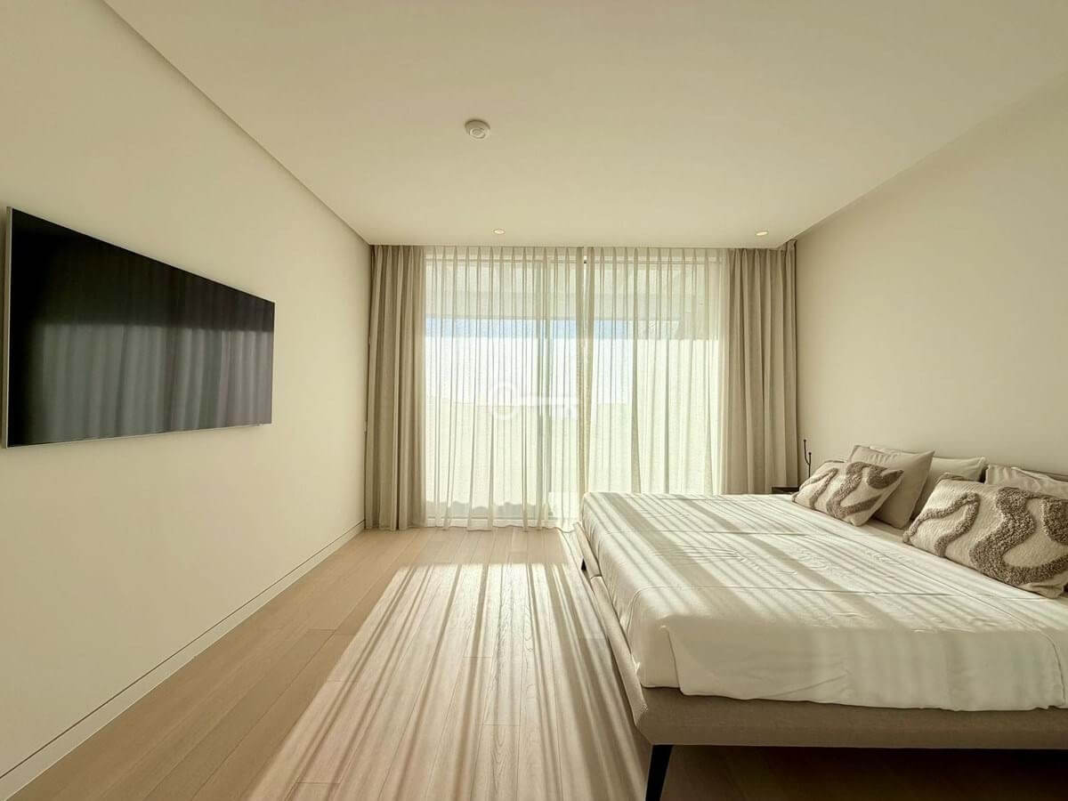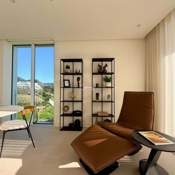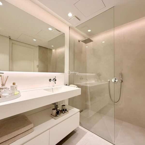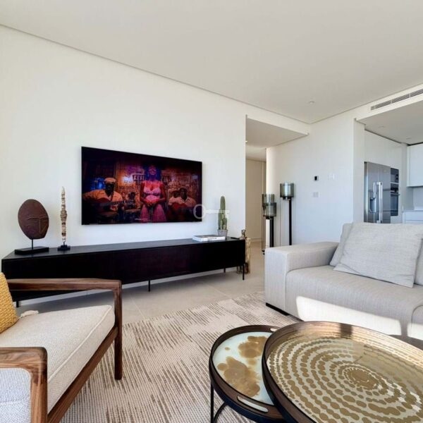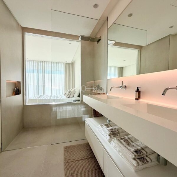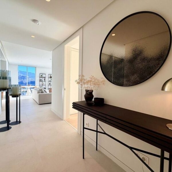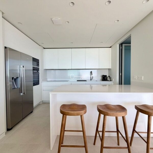 Apartament oferuje dobrze zaprojektowany układ z jasnym salonem i jadalnią na otwartym planie, które płynnie przechodzą we w pełni wyposażoną nowoczesną kuchnię. Duże okna otwierają się bezpośrednio na prywatne tarasy o powierzchni 40 m², tworząc silne połączenie między życiem wewnątrz i na zewnątrz oraz zapewniając idealną przestrzeń do relaksu lub rozrywki podczas podziwiania otaczającej scenerii.