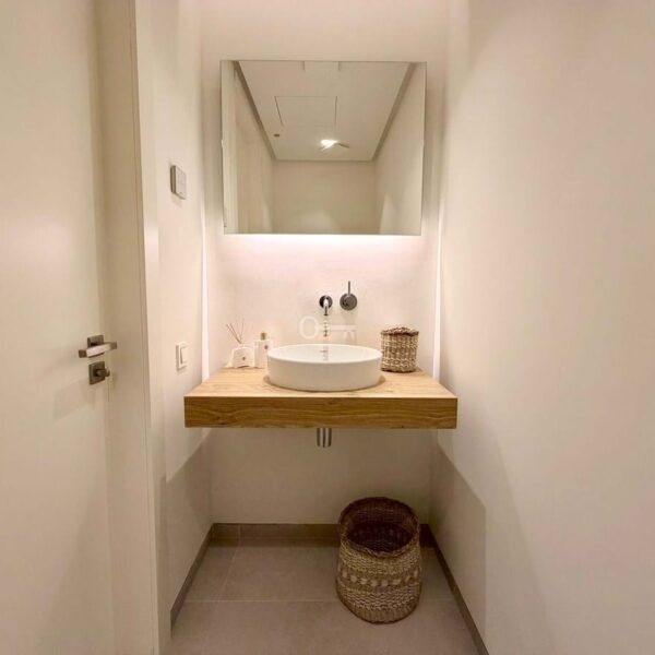 Nieruchomość obejmuje trzy przestronne sypialnie, wszystkie zaprojektowane z myślą o komforcie i funkcjonalności. W sumie są dwie nowoczesne łazienki i toaleta dla gości, wykończone w wysokim standardzie z wysokiej jakości materiałów. Oddzielna pralnia z dodatkowym schowkiem zwiększa codzienną wygodę.