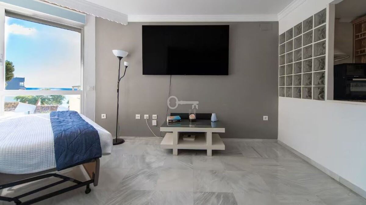 Piękny, w pełni umeblowany i wyposażony apartament typu studio położony w kultowym budynku w Marbelli, zaledwie kilka kroków od plaży w centrum miasta i jego promenady. Od strony południowej, ma całkowitą powierzchnię 52 m². Układ obejmuje hol wejściowy, oddzielną sypialnię, łazienkę, w pełni umeblowaną i wyposażoną kuchnię oraz salon/jadalnię. Z okien roztaczają się wspaniałe widoki na morze, ogród i wspólny basen. Idealny jako inwestycja, dom wakacyjny lub dla tych, którzy wolą być blisko wszystkich udogodnień i uroków Marbelli. Wysokiej jakości konstrukcja, klimatyzacja, usługi konsjerża, dobrze utrzymane części wspólne i piękny ogród ze wspólnym basenem. Wyselekcjonowana społeczność mieszkańców, w której nie są przyznawane licencje na wynajem turystyczny.