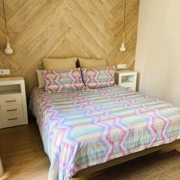 Nieruchomość oferuje 100 m², podzielone na 3 sypialnie, 2 łazienki, oddzielną kuchnię, taras i pomieszczenie gospodarcze. Znajduje się w dobrze utrzymanym kompleksie mieszkalnym z basenem i ogrodami, a także przystosowanym dostępem.