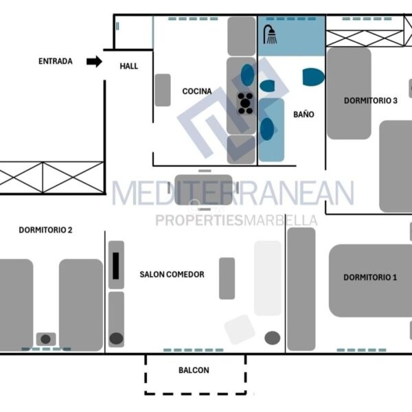 Discover this cosy 3-bedroom, 1-bathroom apartment located in an Andalusian-style neighbourhood in a quiet area with squares, gardens, fountains and cobbled streets, next to Marbella’s old town and city centre.