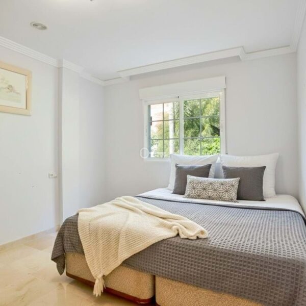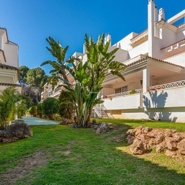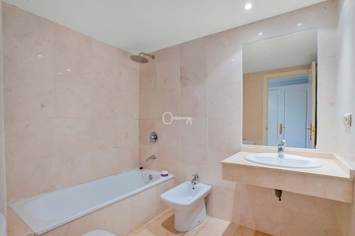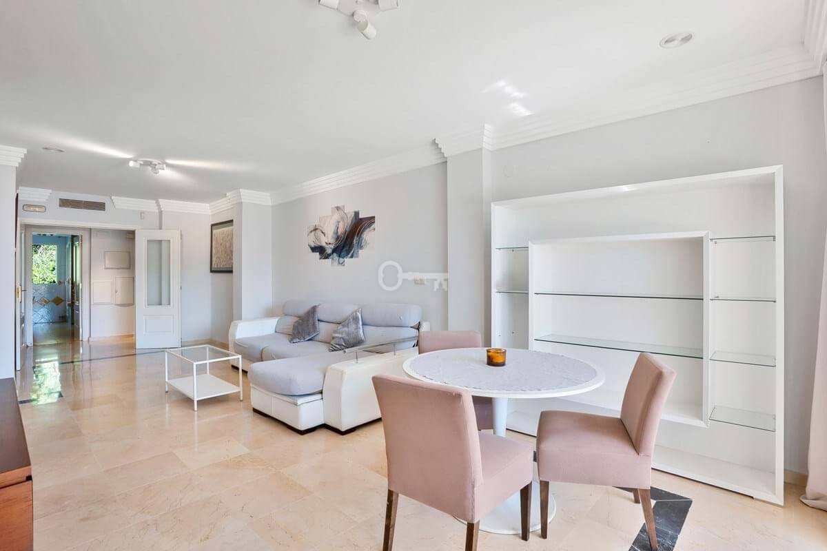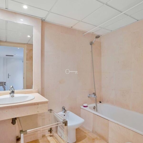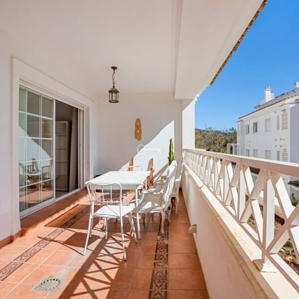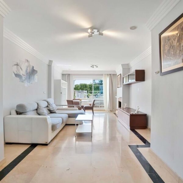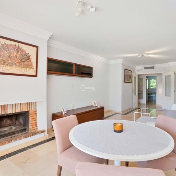 Bright south west-facing two bedroom apartment located in the gated community of Lomas de Rio Real, Marbella. This property offers a large entrance hall leading onto a fully fitted kitchen with seperate utility room, a very spacious living and dining room with fireplace and direct access to a private terrace. There is one guest bedroom and one family bathroom, plus a master bedroom with ensuite. This first floor apartment has natural light throughout, lift access, air conditioning and an allocated parking space in the communal garage. Residents also enjoy access to the beautifully lascaped gardens and communal swimming pools. Ideally located close to all amenities, golf courses and shops, and just a short drive to the beach and Marbella itself.